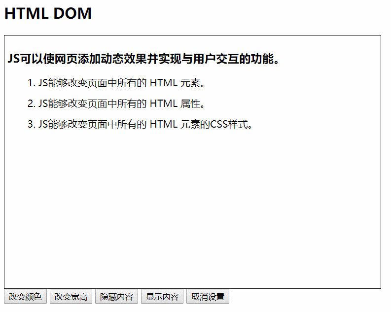 换言之,HTML DOM 是关于如何获取、修改、添加或删除 HTML 元素的标准 -