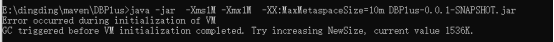 java -jar -Xms1M -Xmx1M -XX:MaxMetaspaceSize=10m DBPlus-0.0.1-SNAPSHOT.jar