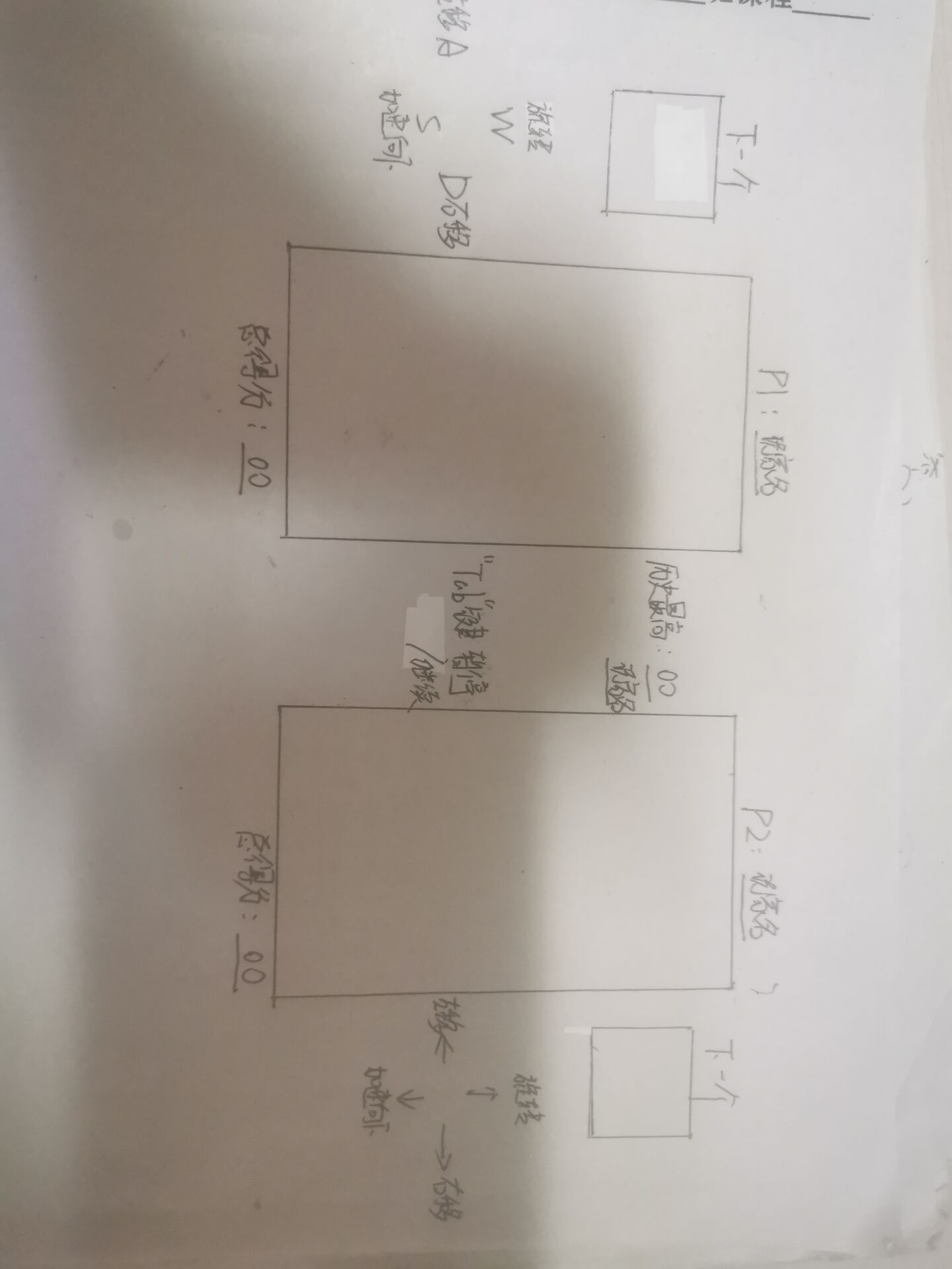 游戏中分别读取两人键盘操作(变形,左右移动,加速下落)