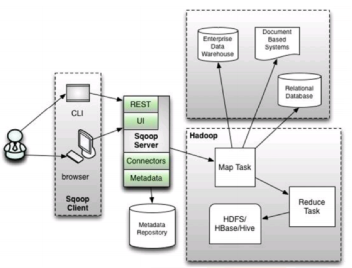 Sqoop是一个用来将Hadoop和关系型数据库中的数据相互转移的工具,可以在关系型数据库(Mysql,Oracle,Postgre等)和Hadoop(Hive,HBase)等间双向互导
