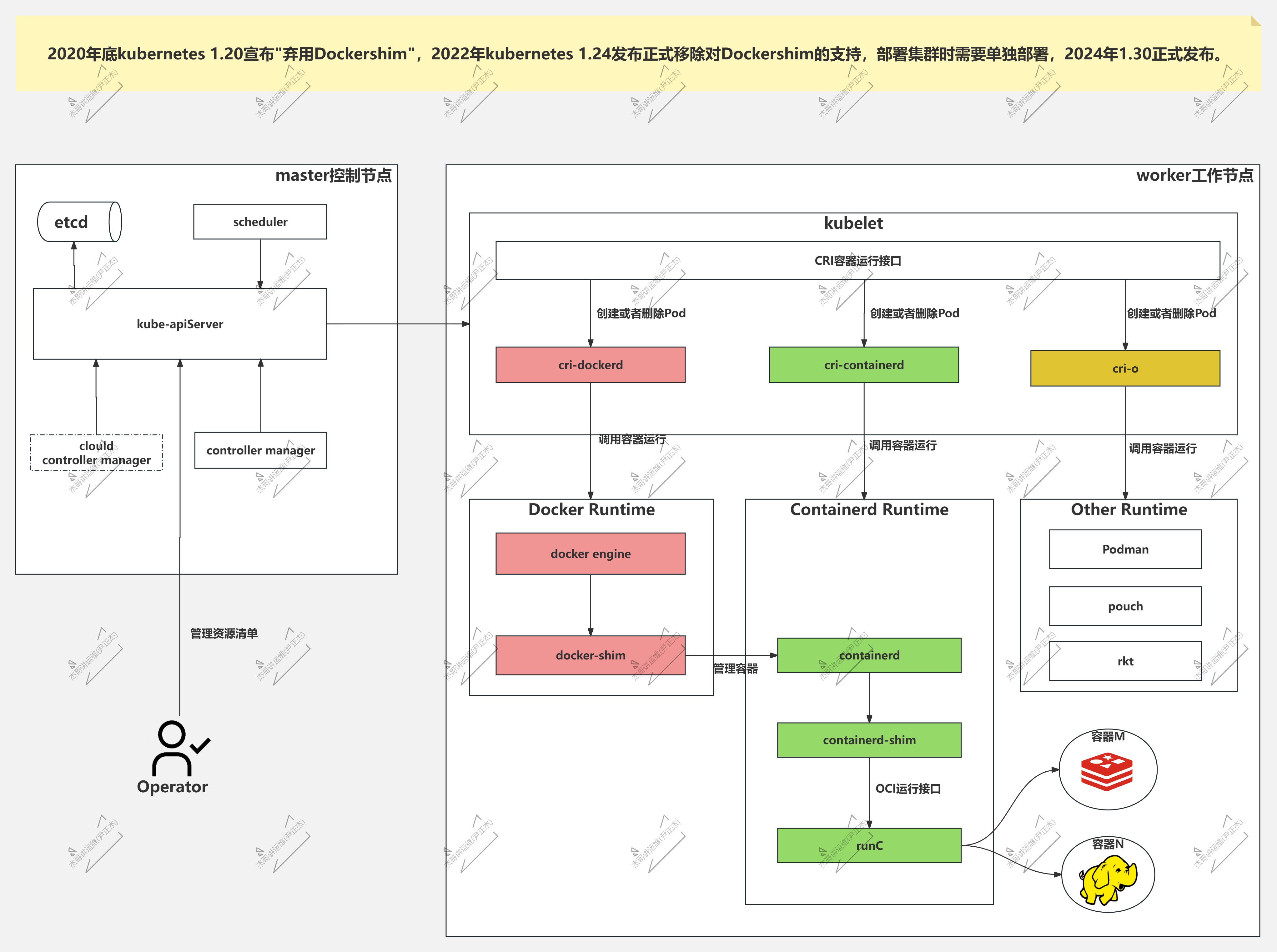 - 2023年3月,K8S 1.23.17 发布了最后一个支持docker-shim的版本。