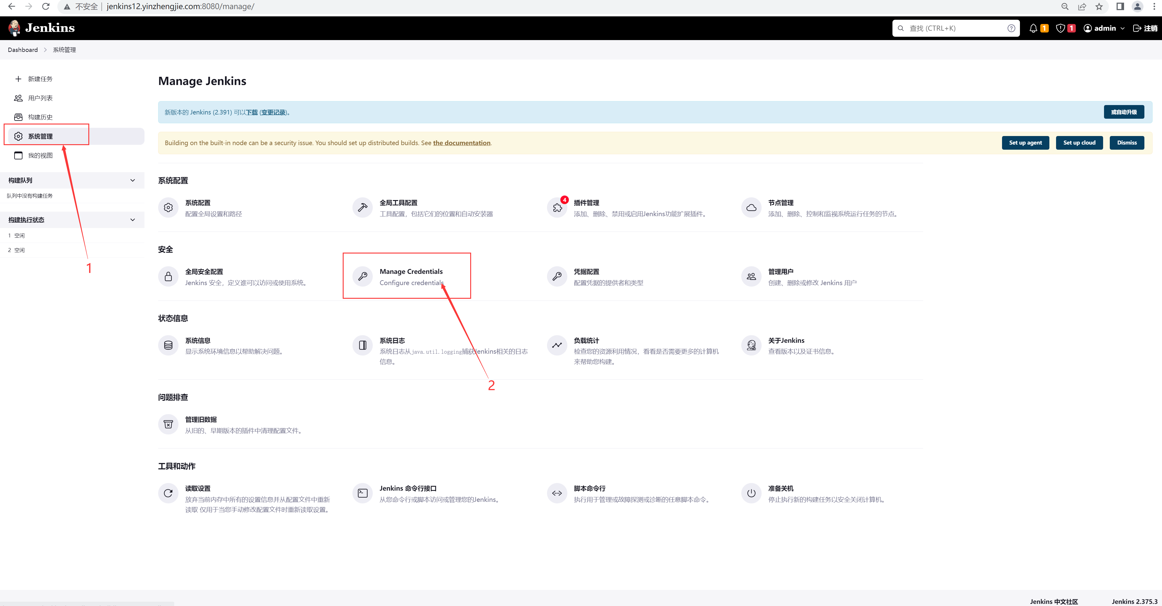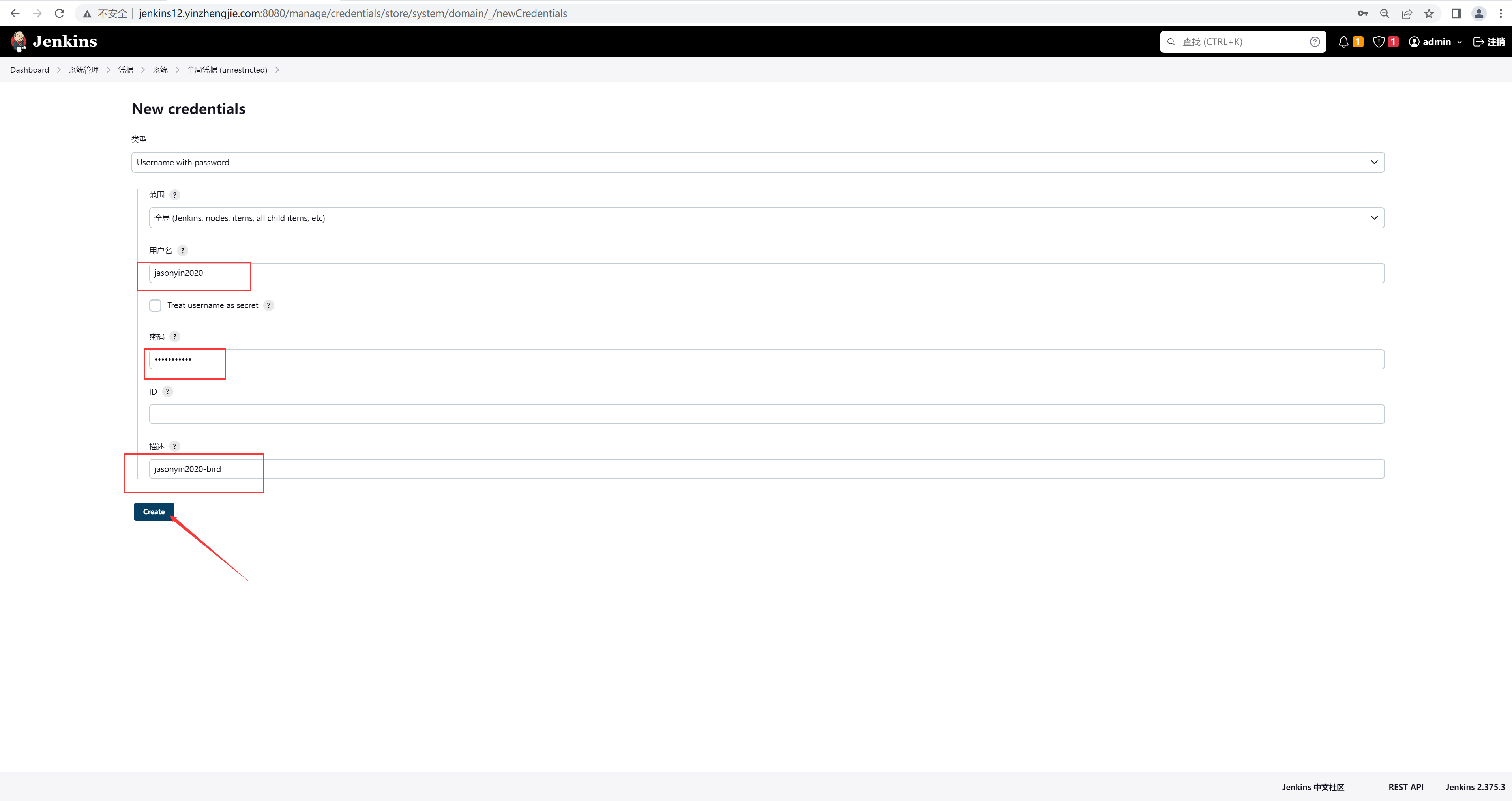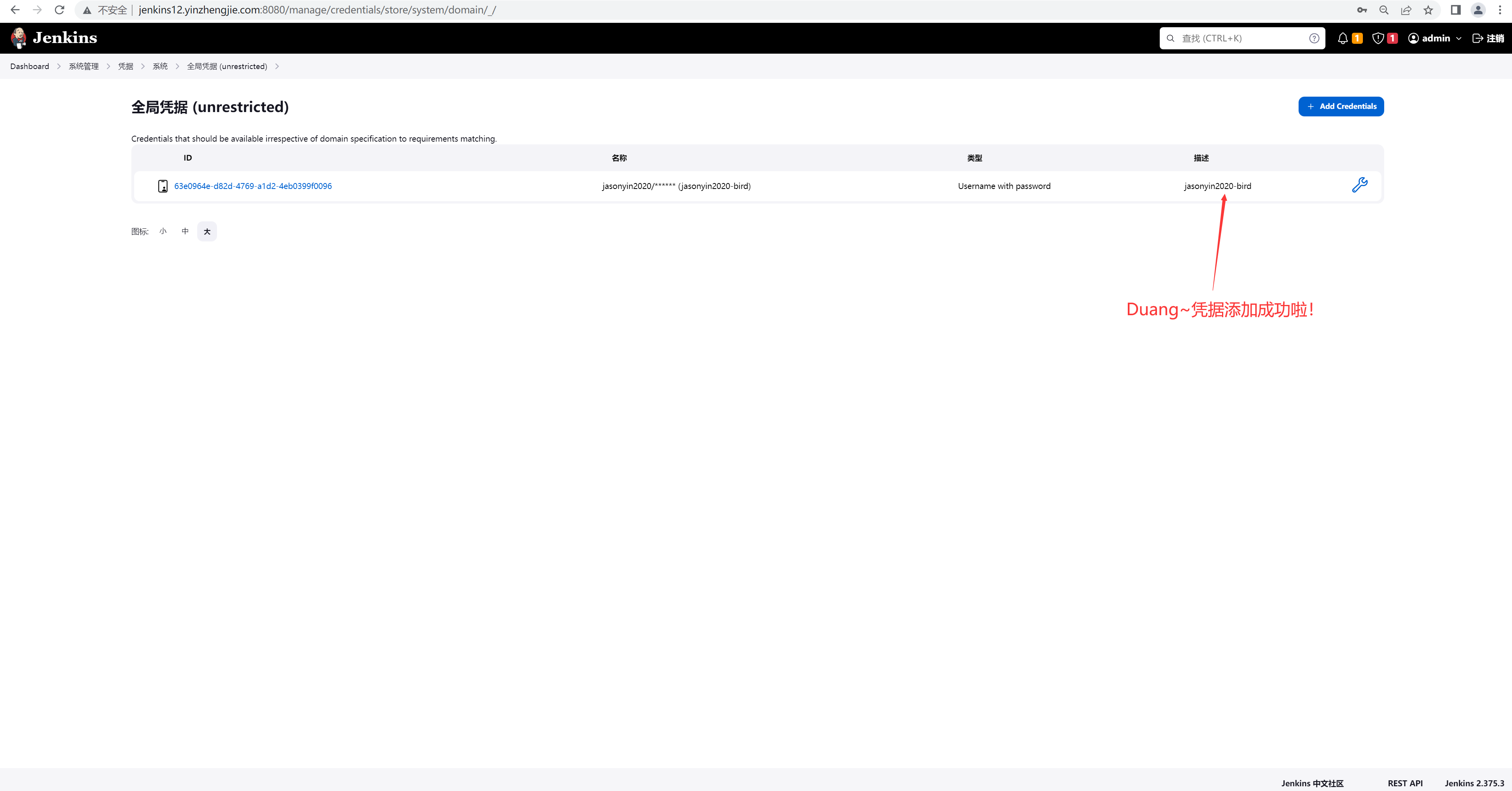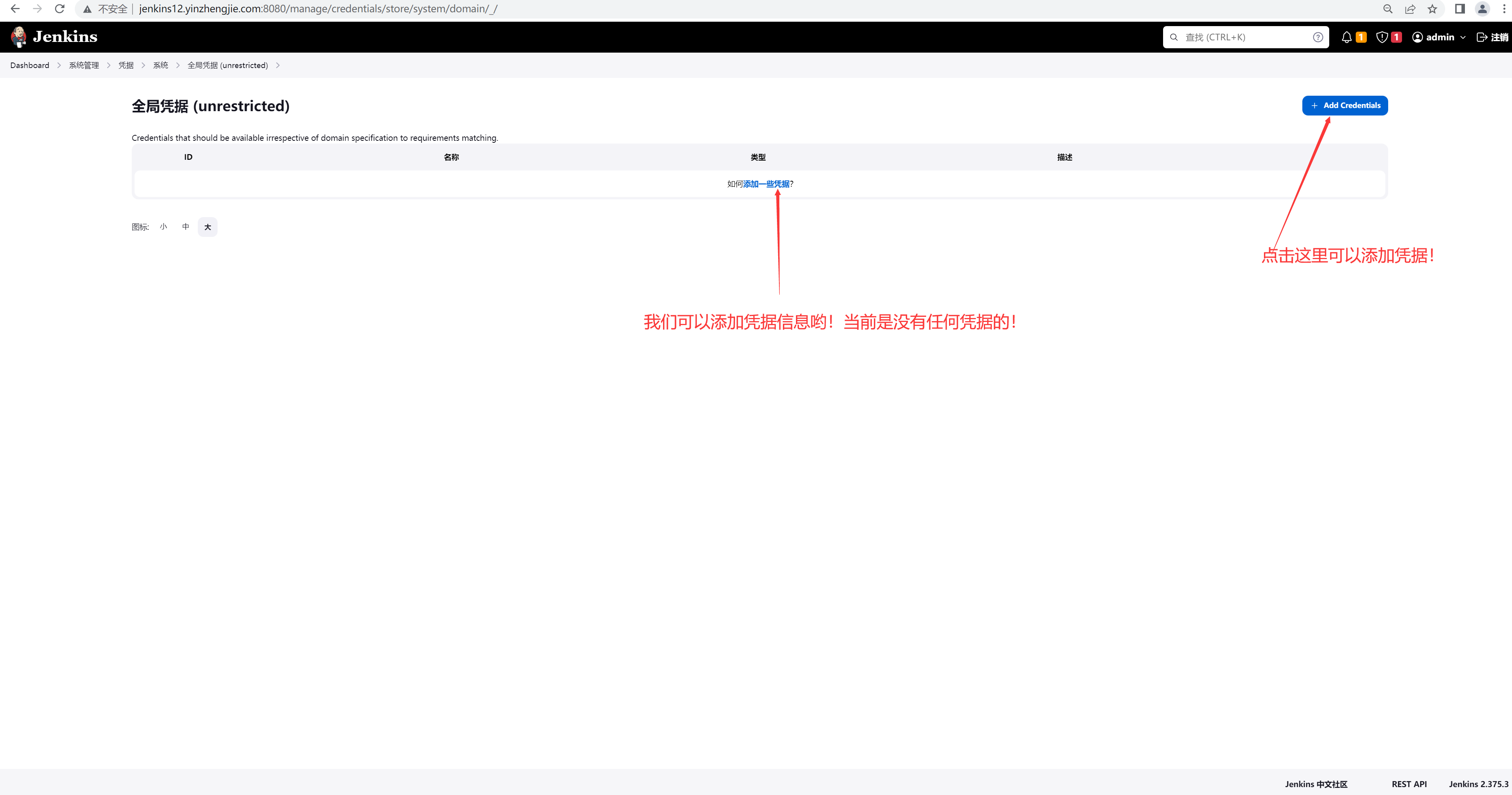 如上图所示,进入到管理界面,就可以看到Jenkins的凭据管理界面,如下图所示。
