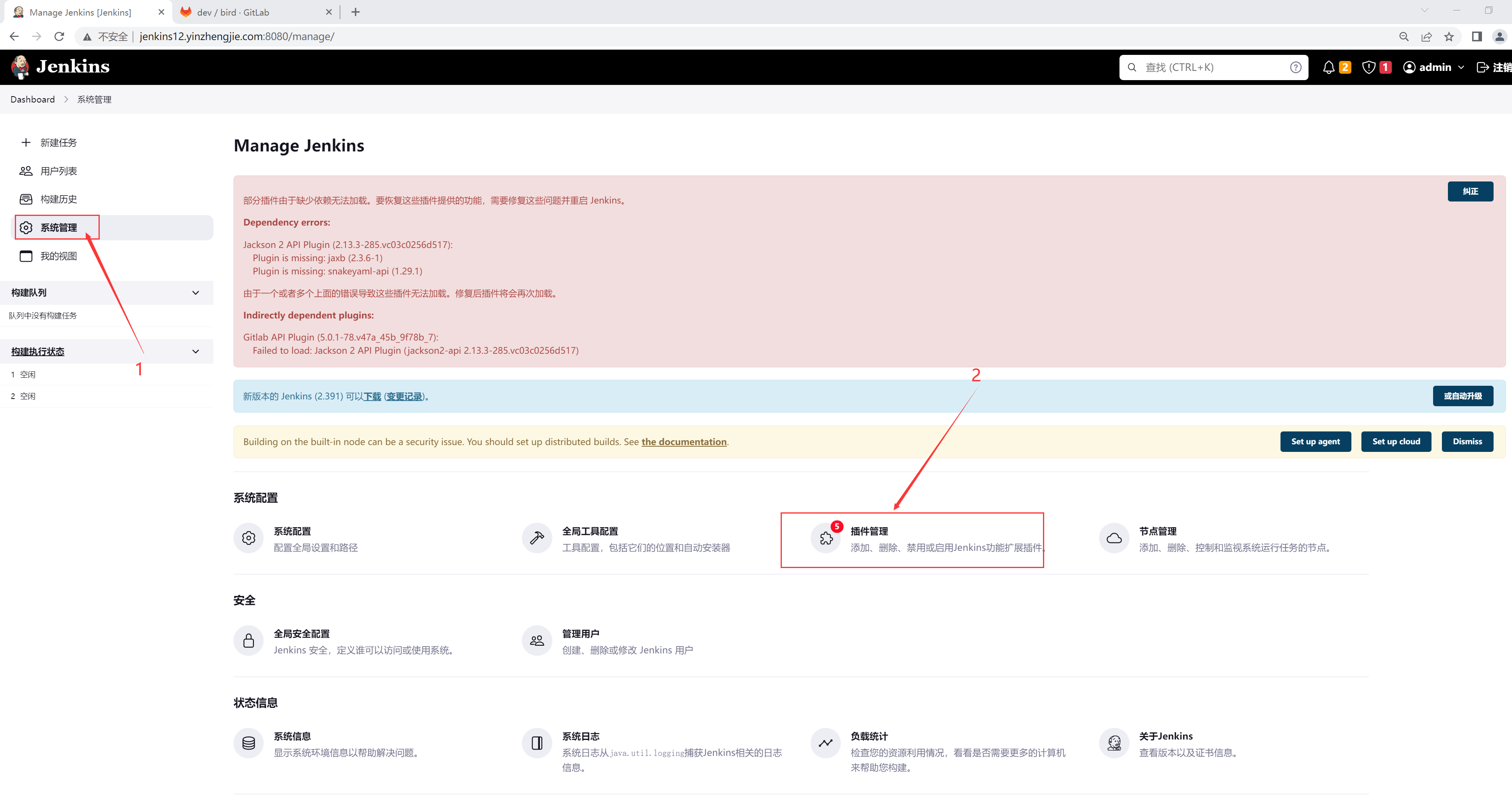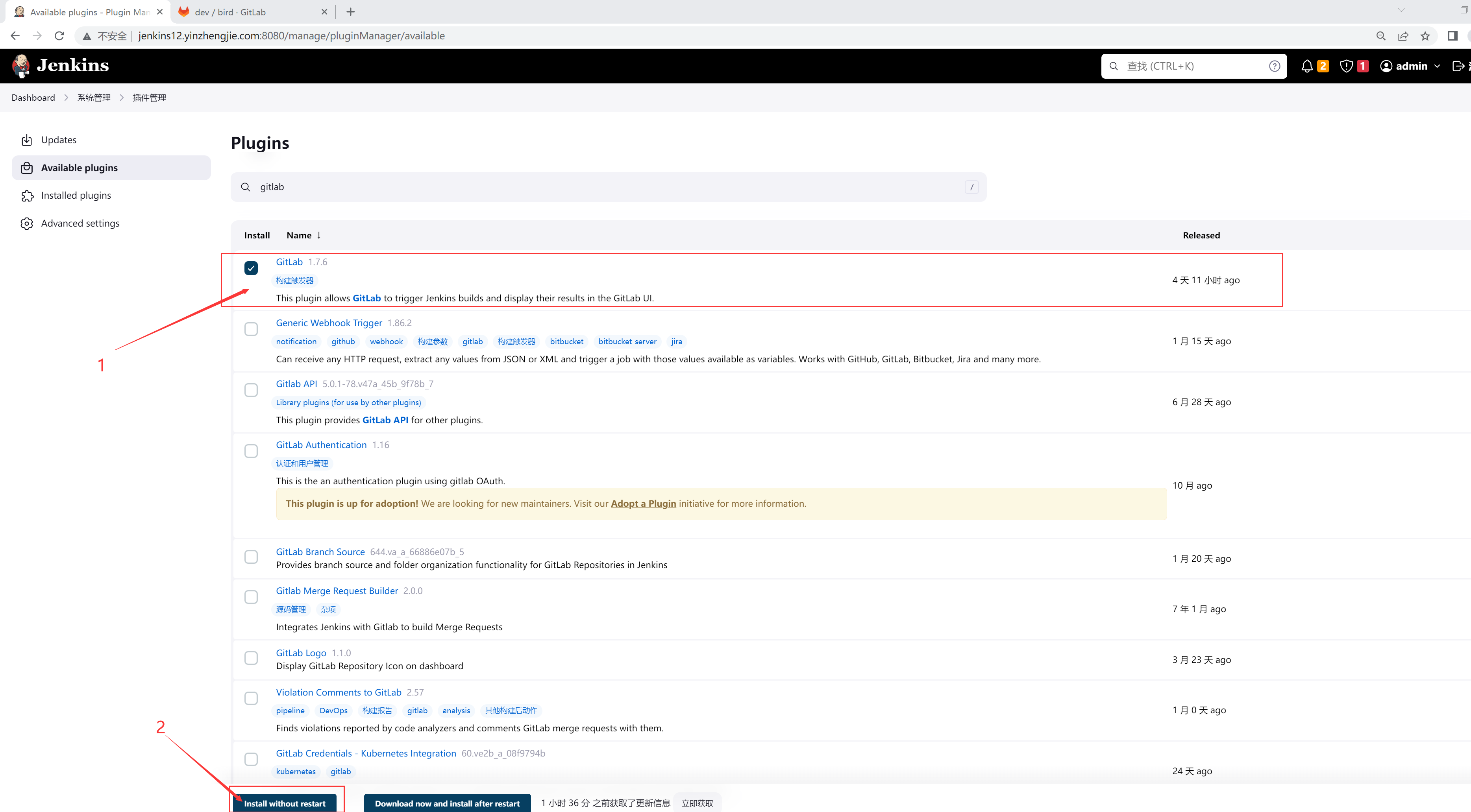如下图所示,搜索gitlab插件并点击安装按钮。