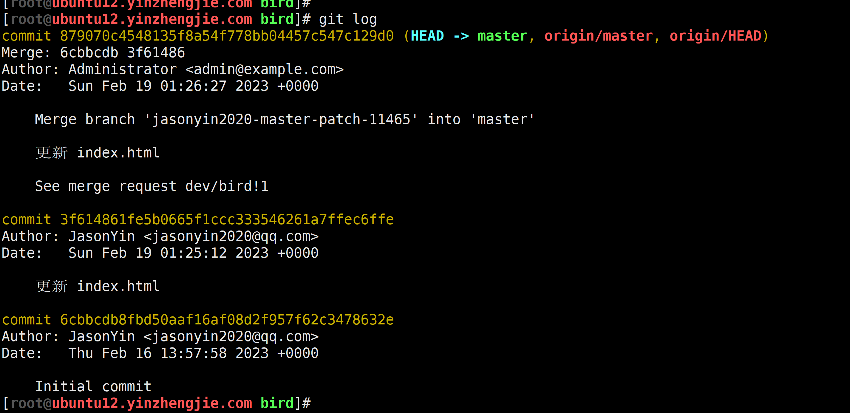 # git clone git@www.yinzhengjie.com:dev/bird.git