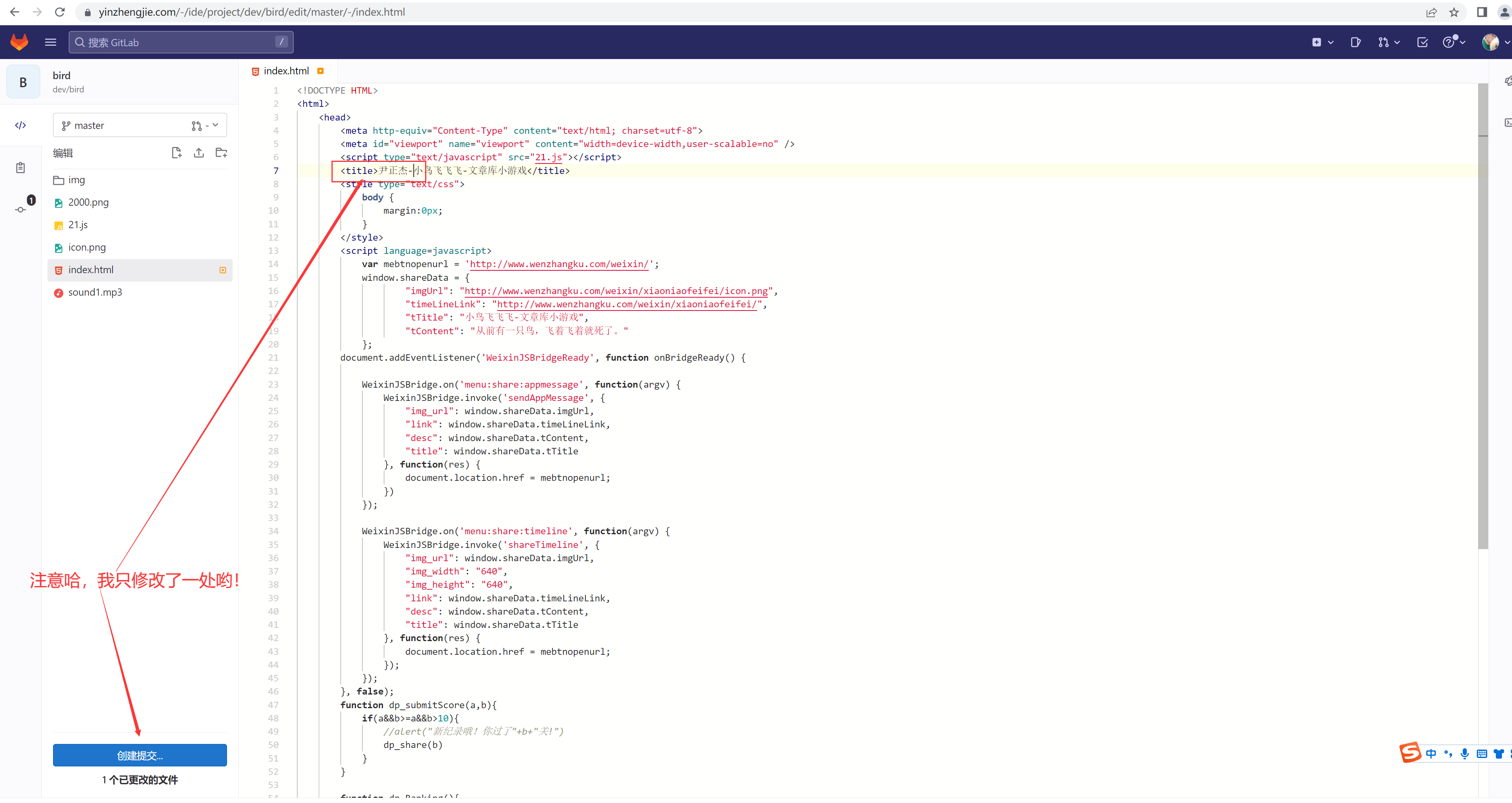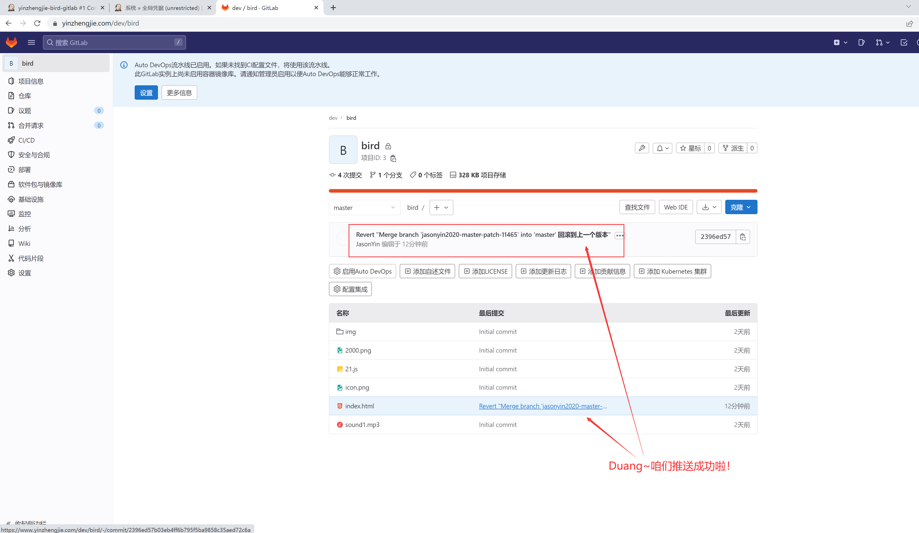 如下图所示,在远程仓库gitlab是可以看到提交信息的哟。