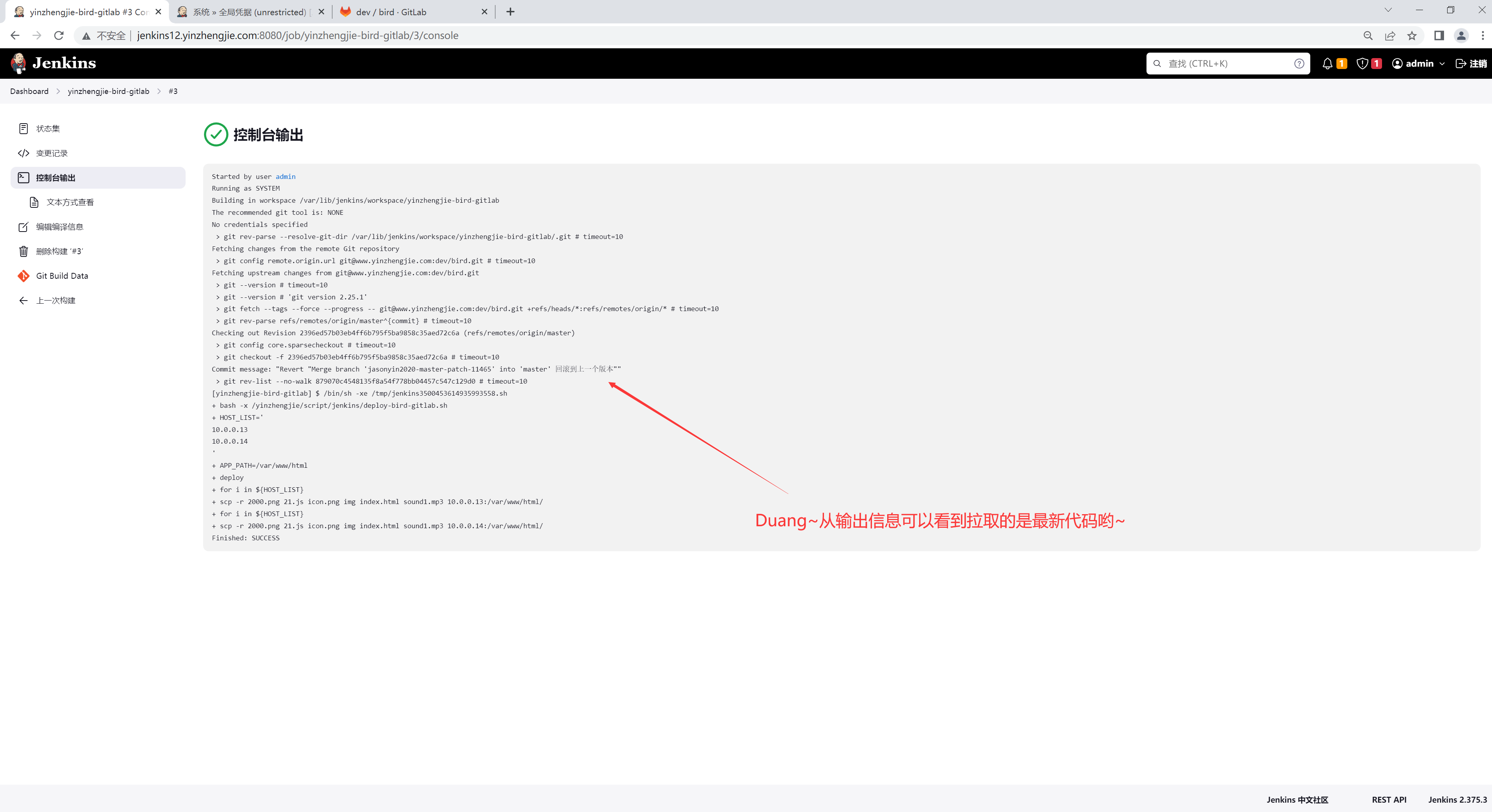 如上图所示,再一次部署成功了,说明咱们的脚本是没有问题的。