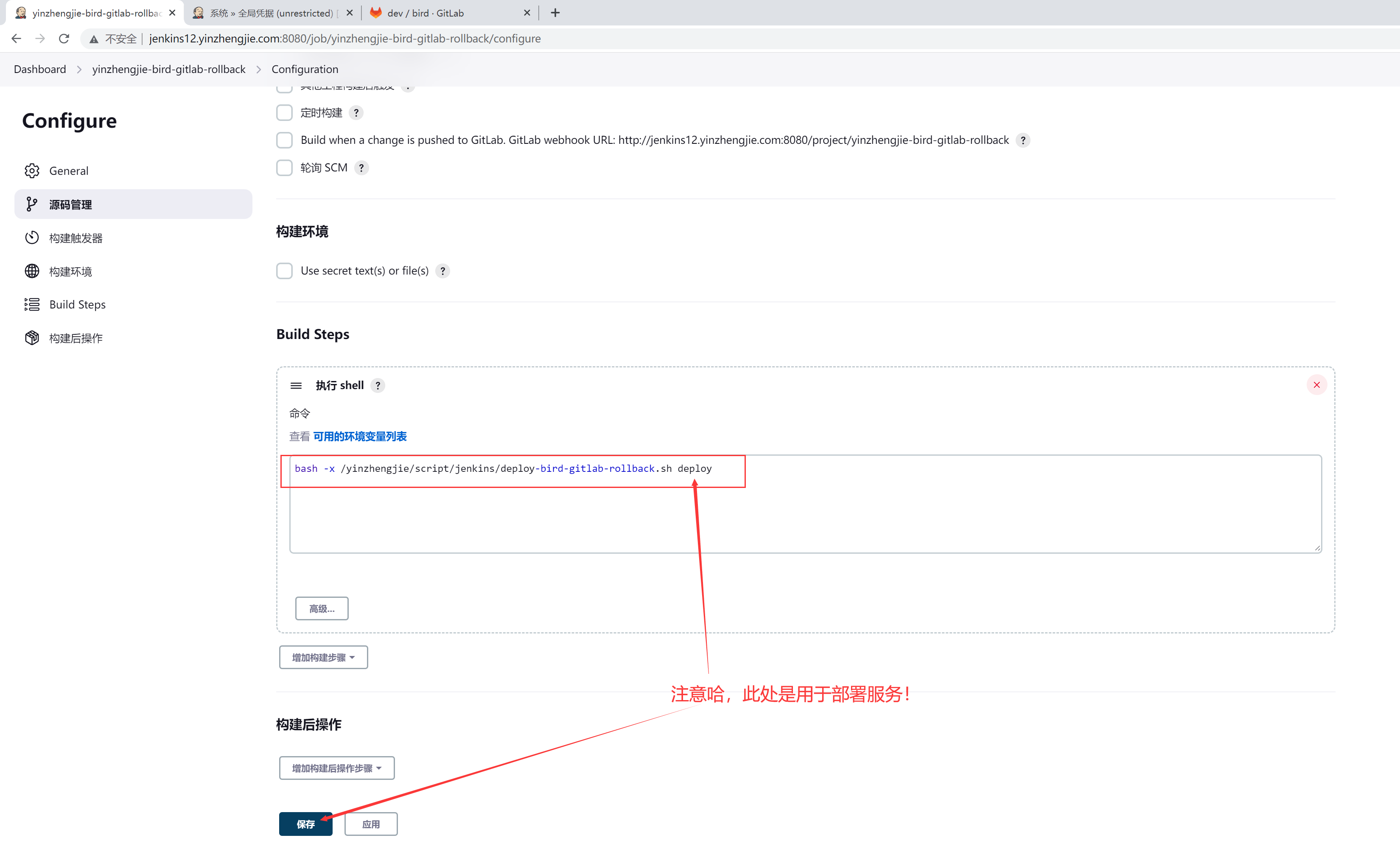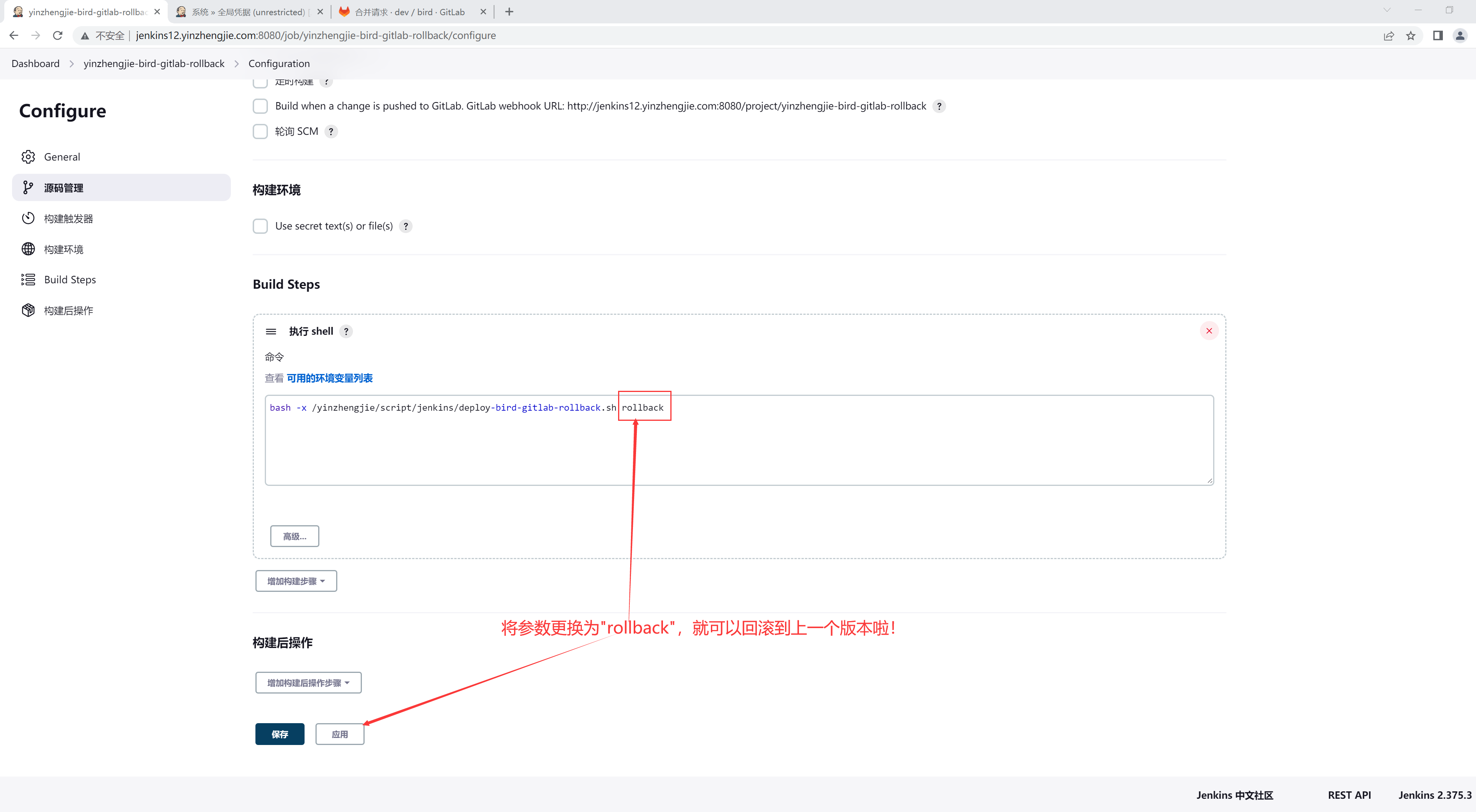 [root@ubuntu12.yinzhengjie.com jenkins]# chmod +x /yinzhengjie/script/jenkins/deploy-bird-gitlab-rollback.sh