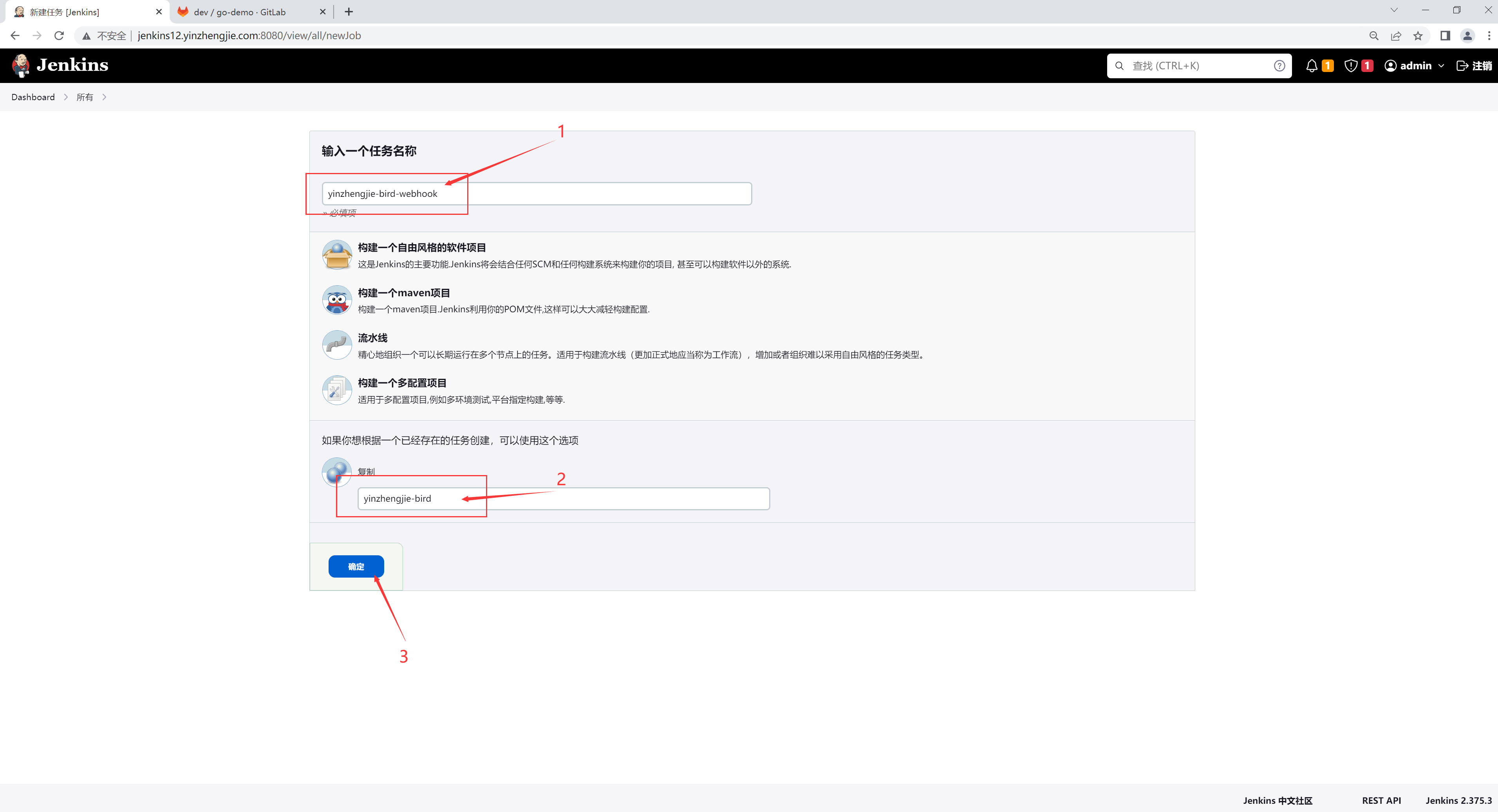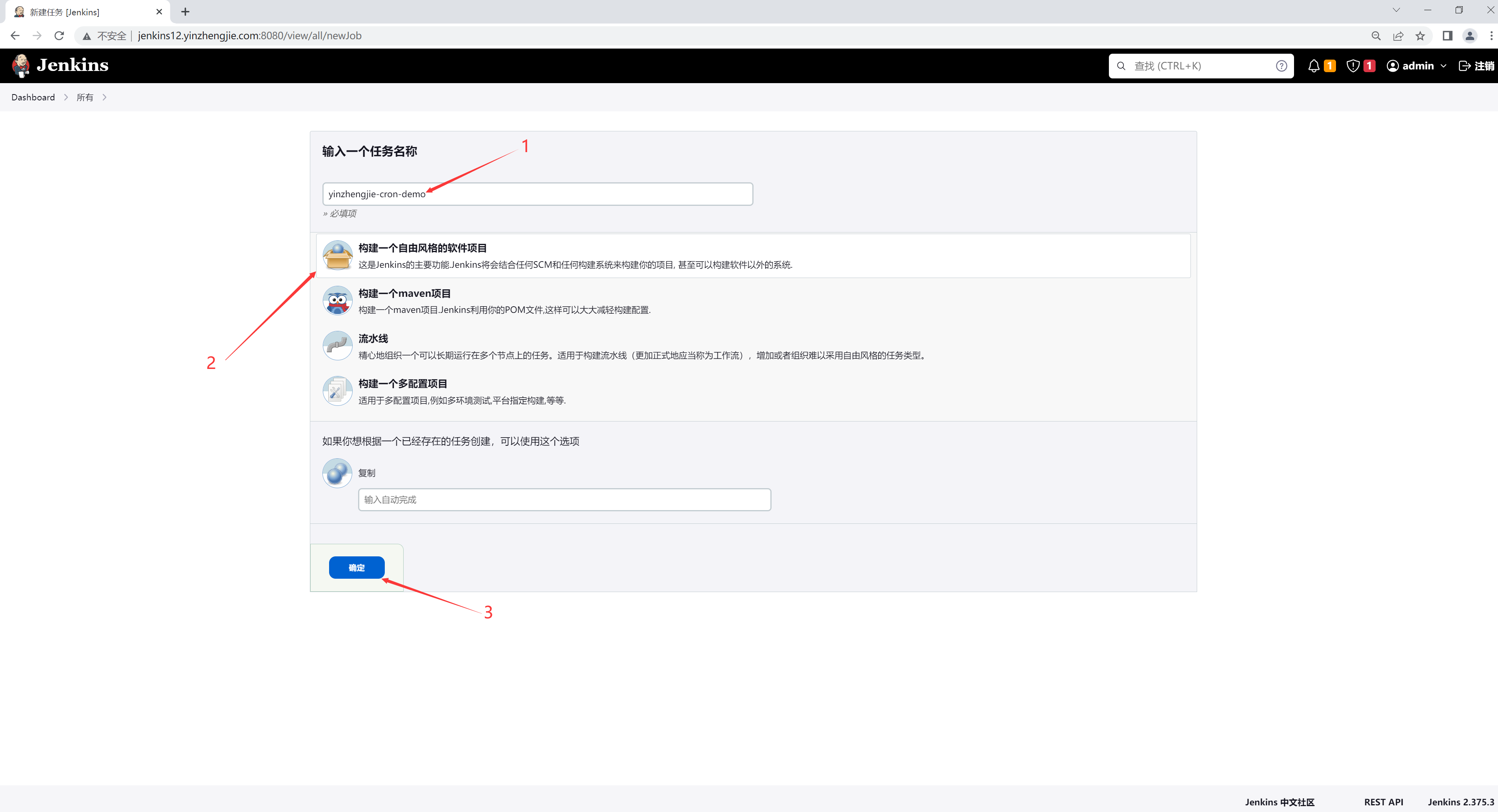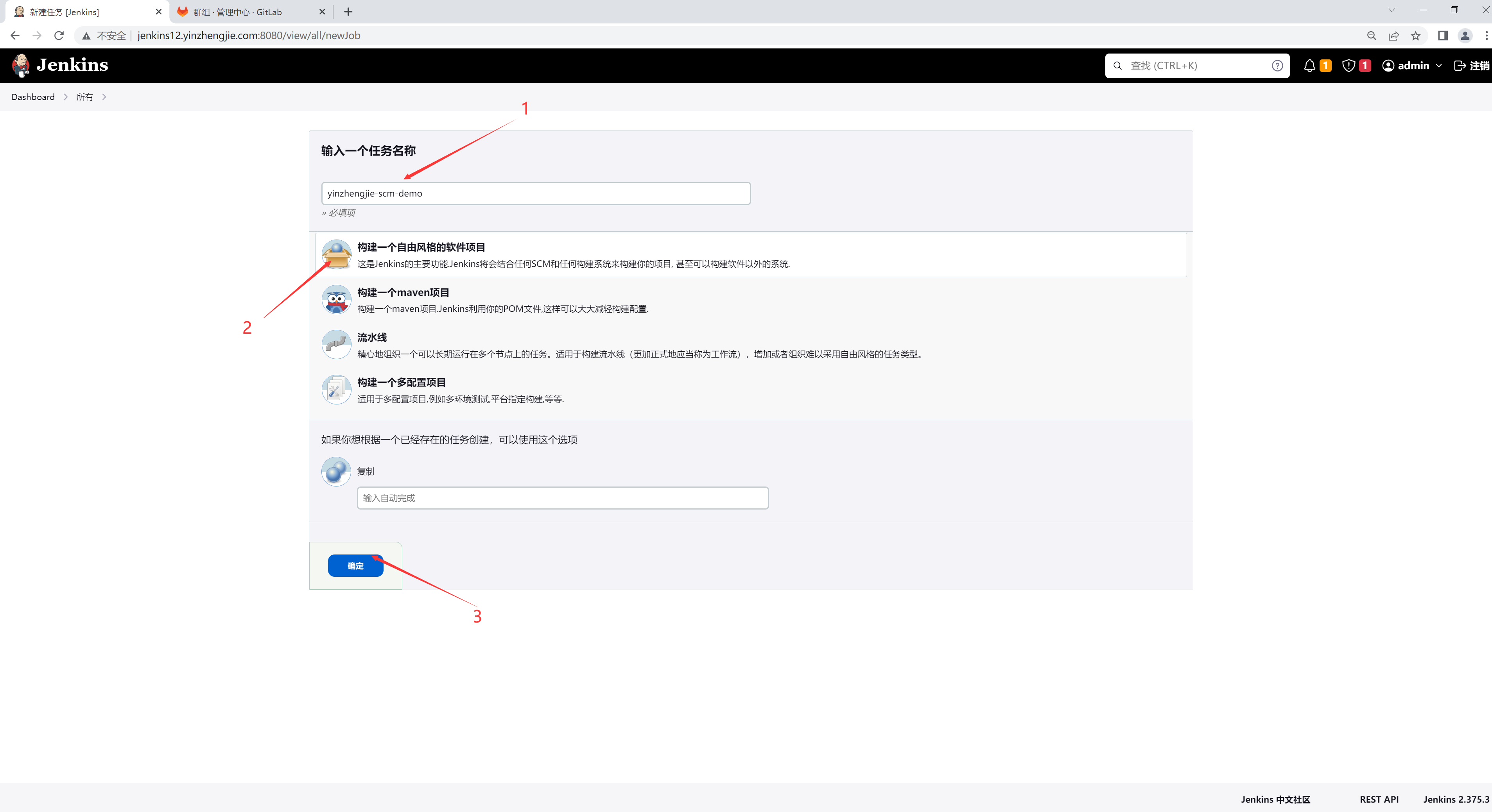 如上图所示,新建一个名为“yinzhengjie-scm-demo”任务。