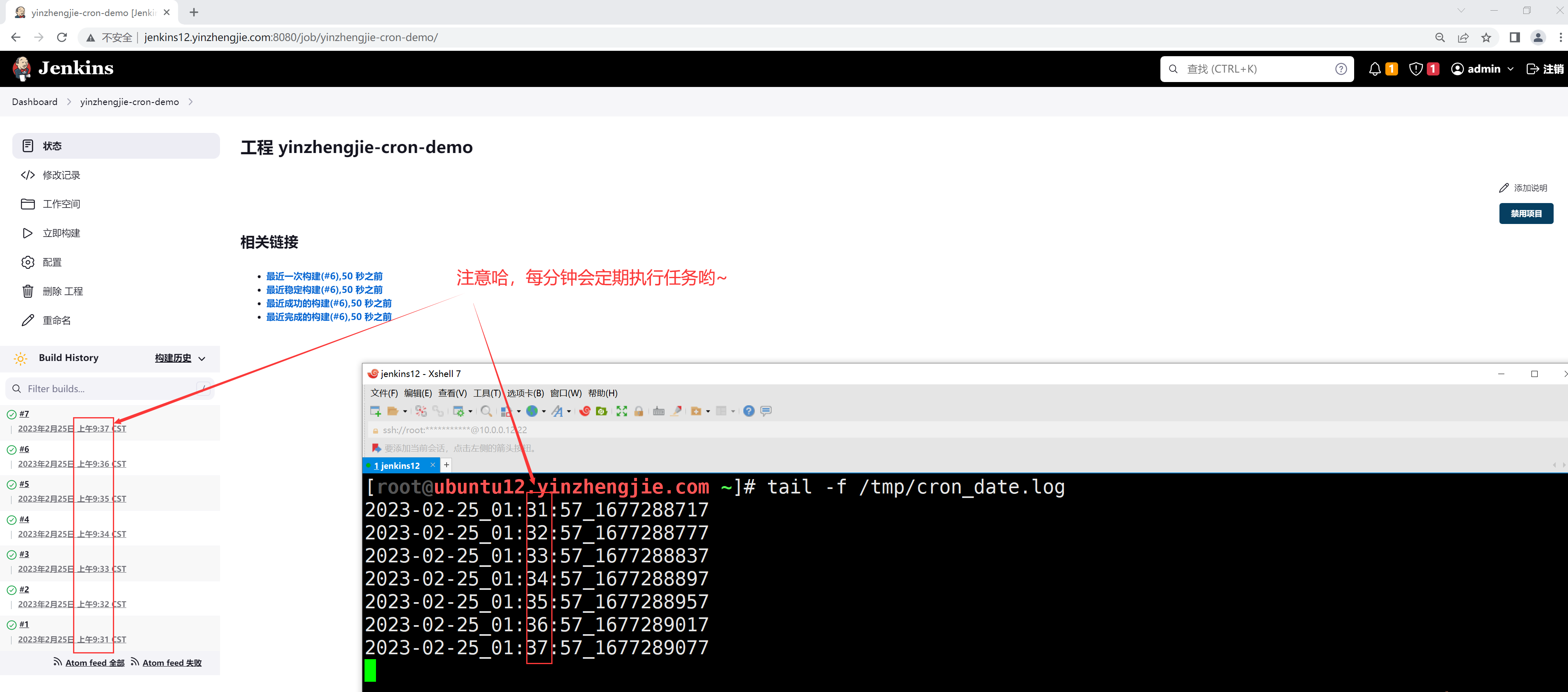 如上图所示,我们无需构建,就发现该任务会定期执行哟~