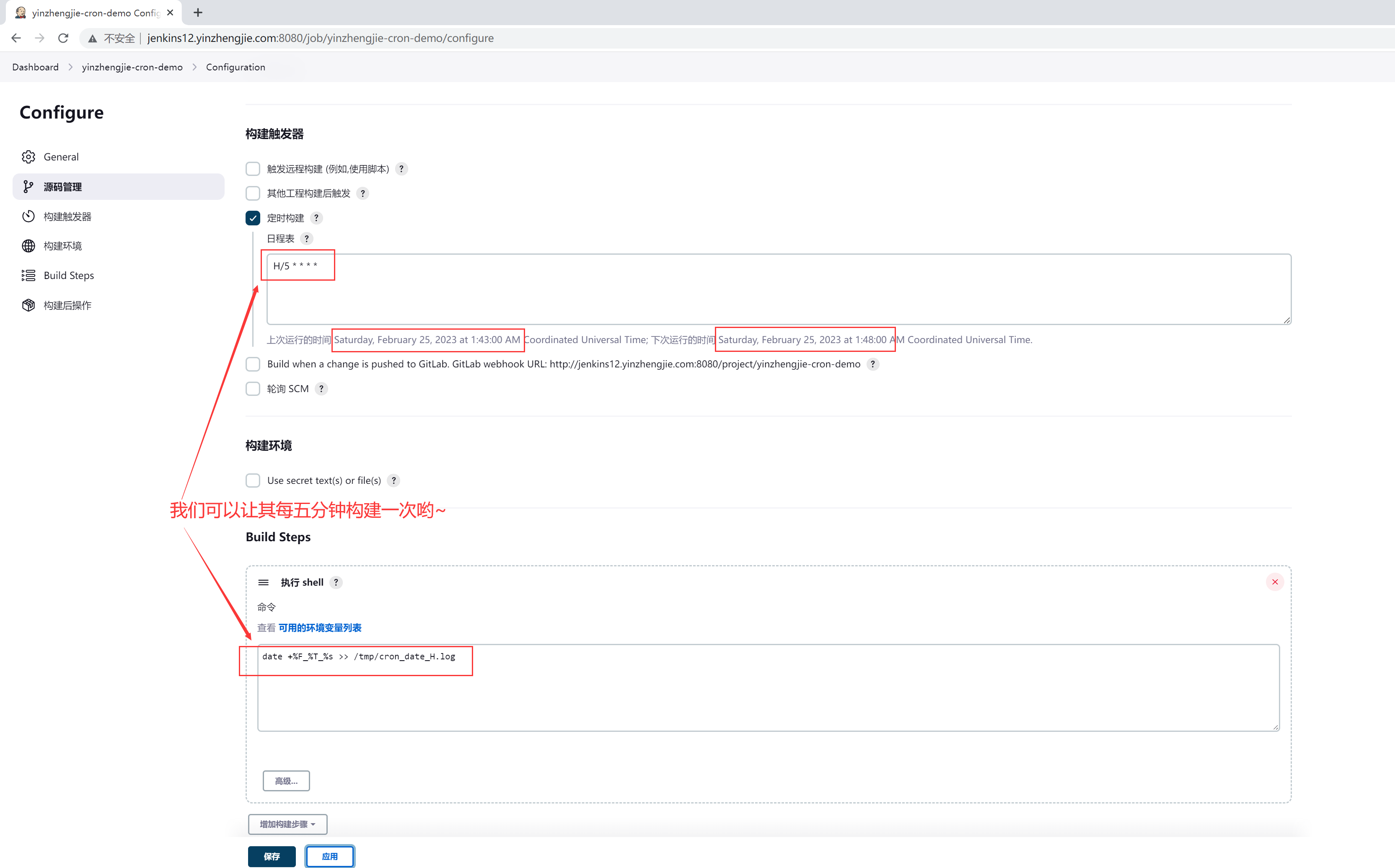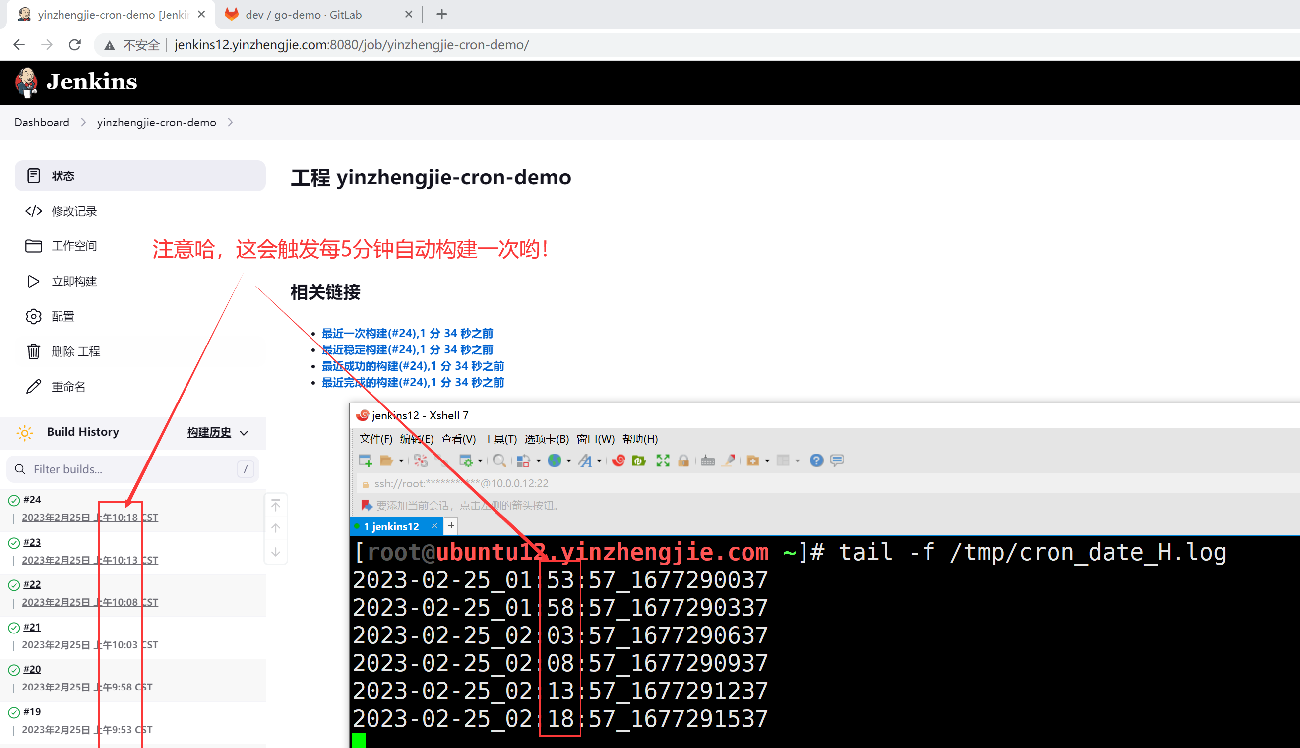 如上图所示,不难发现的确是每五分钟构建一次哟。