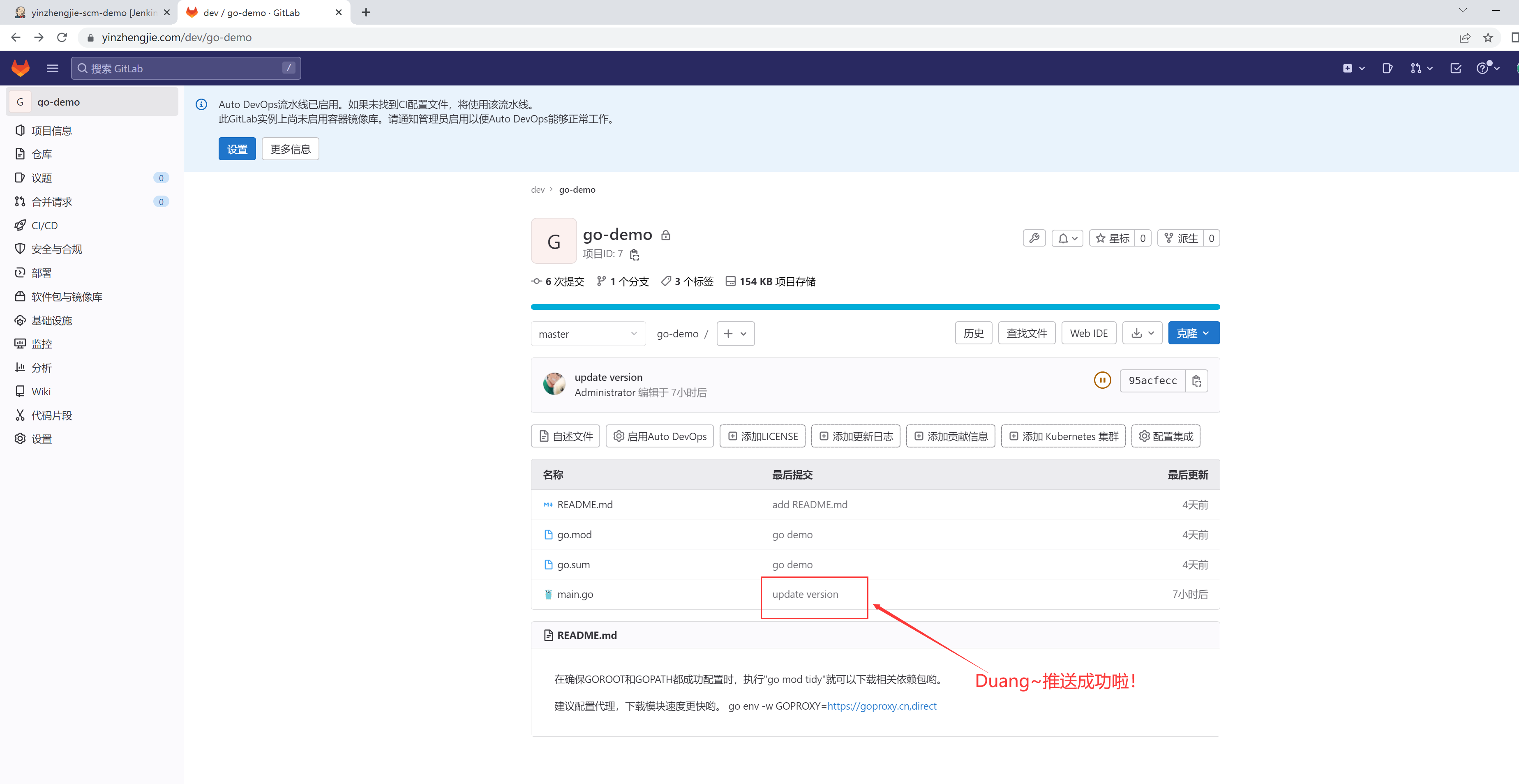 To https://www.yinzhengjie.com/dev/go-demo.git