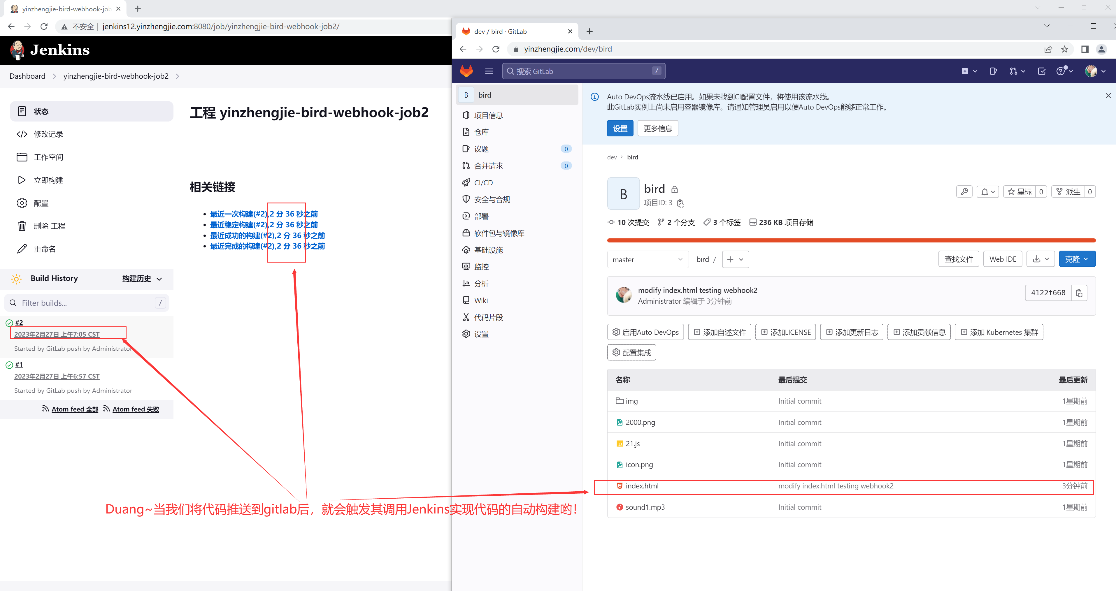 [root@ubuntu11.yinzhengjie.com bird]# git commit -am 'modify index.html testing webhook2'