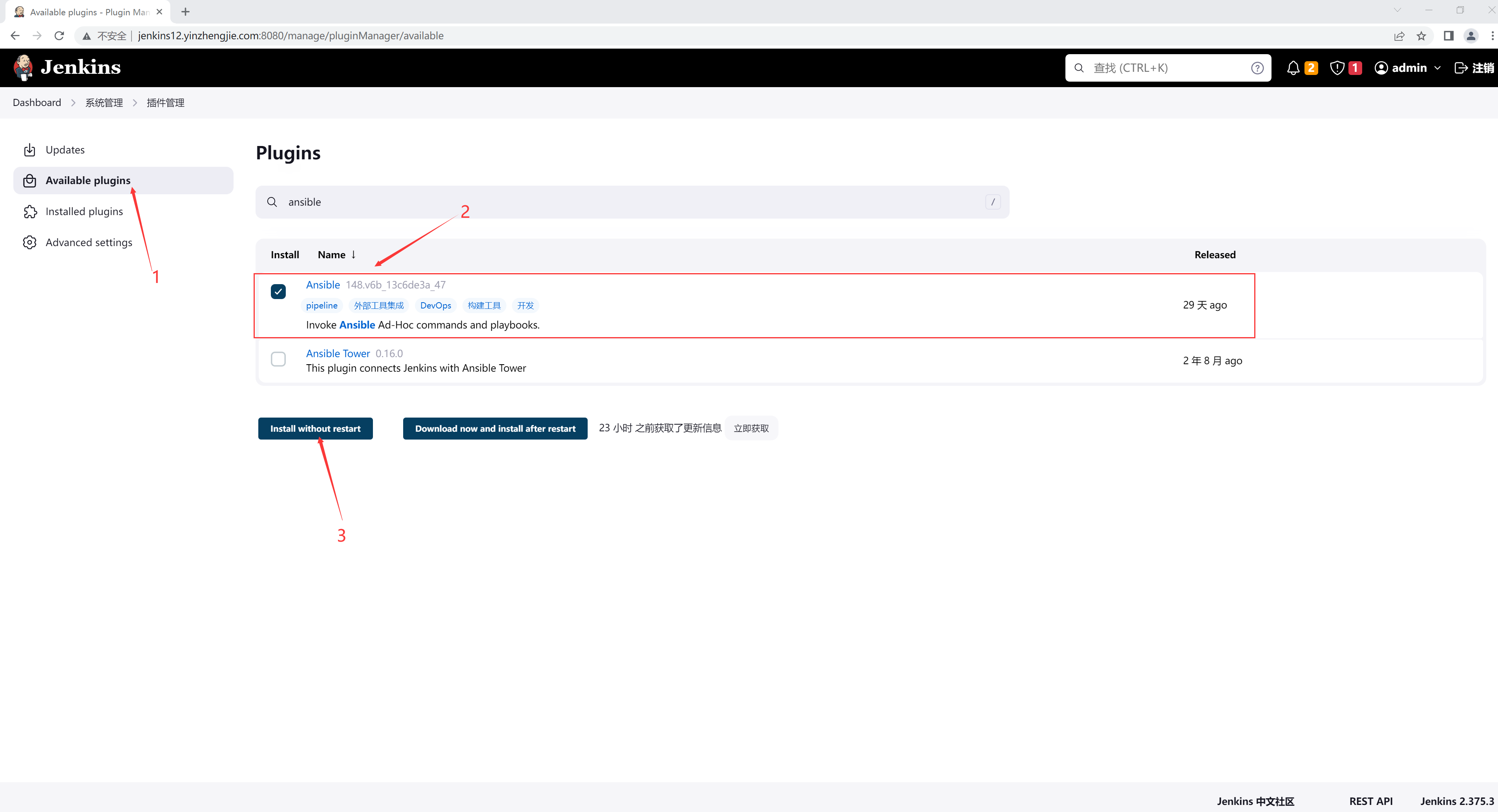 一.Jenkins安装Ansible插件