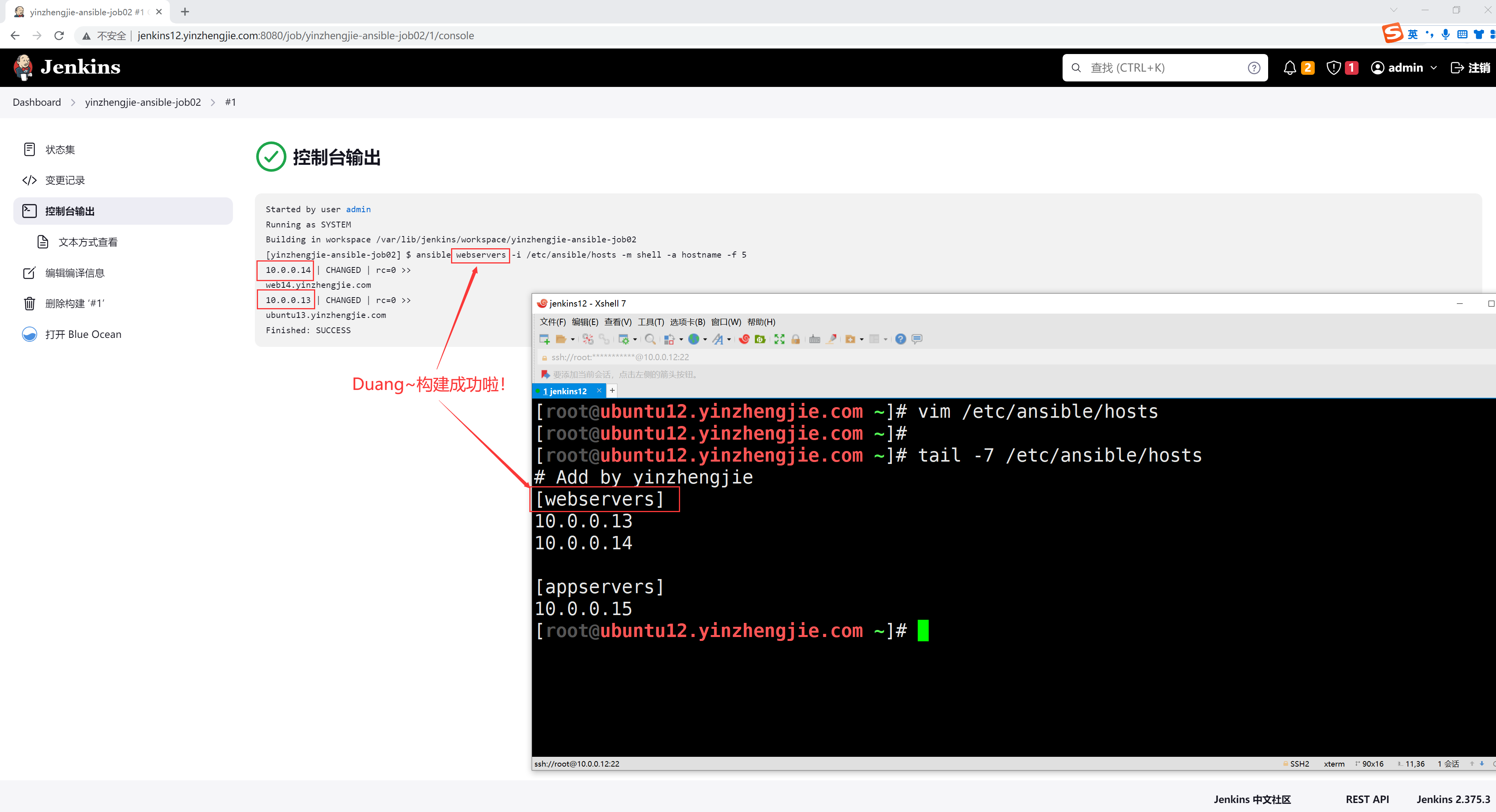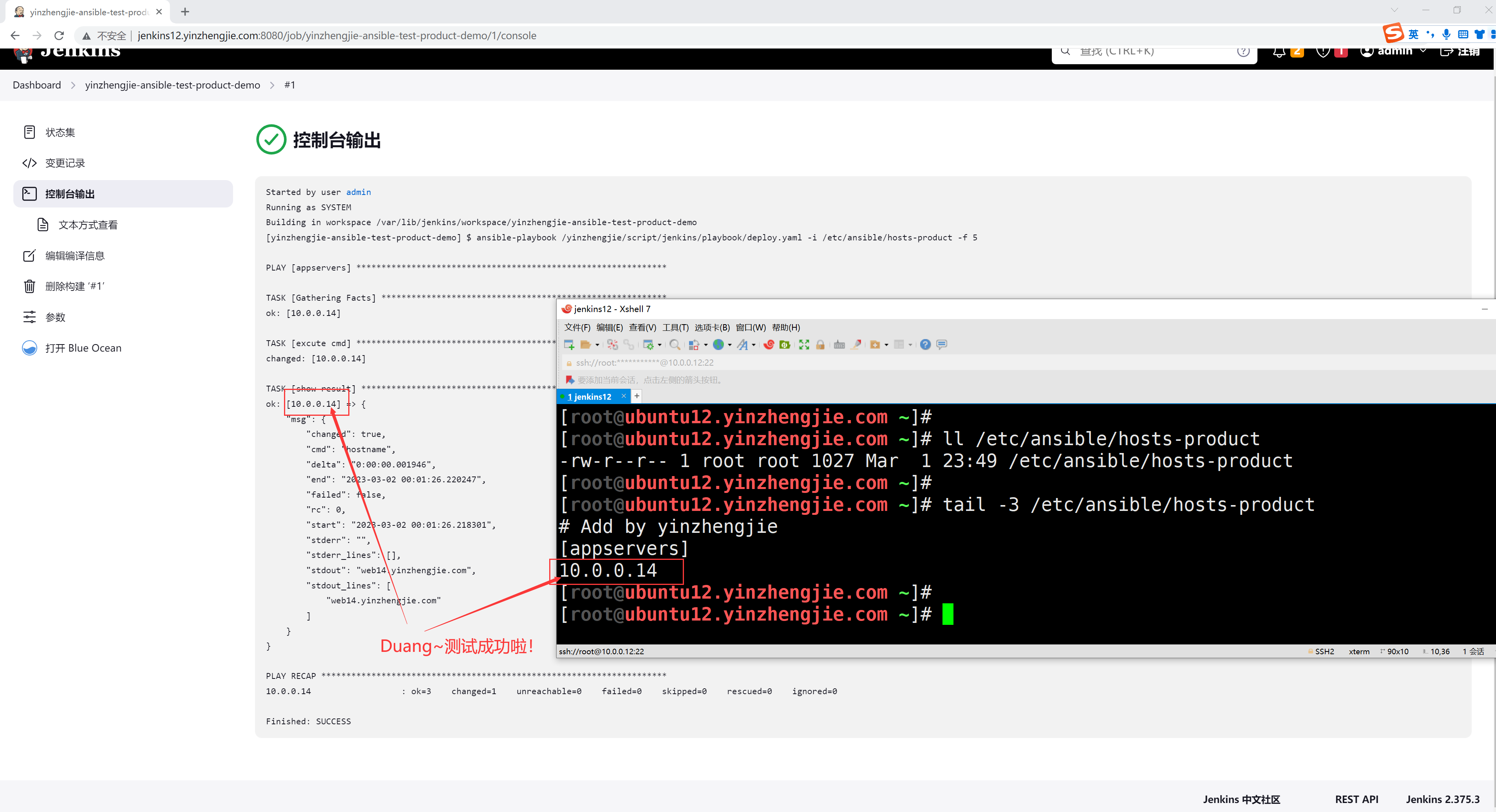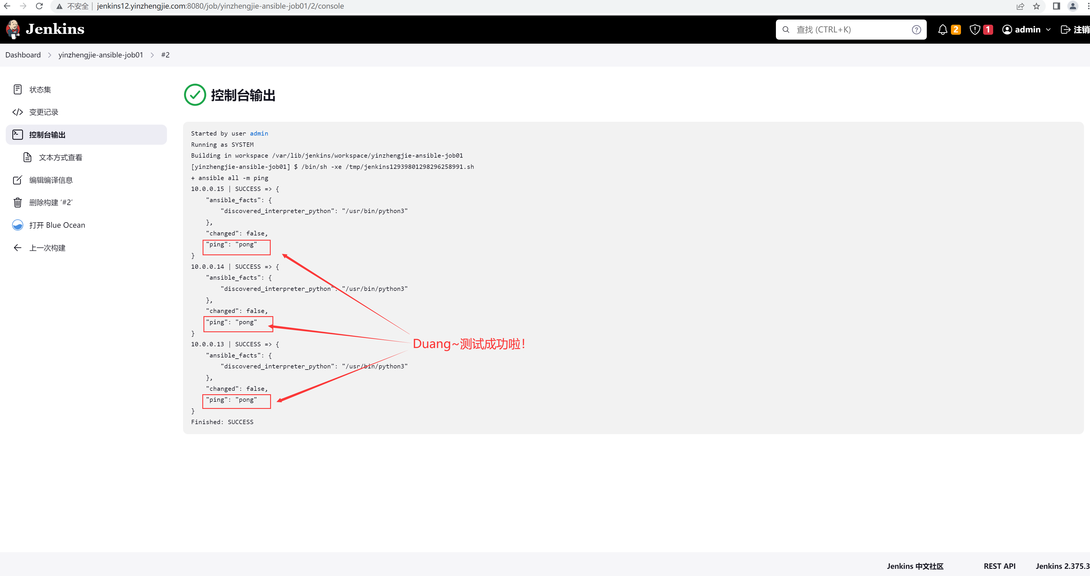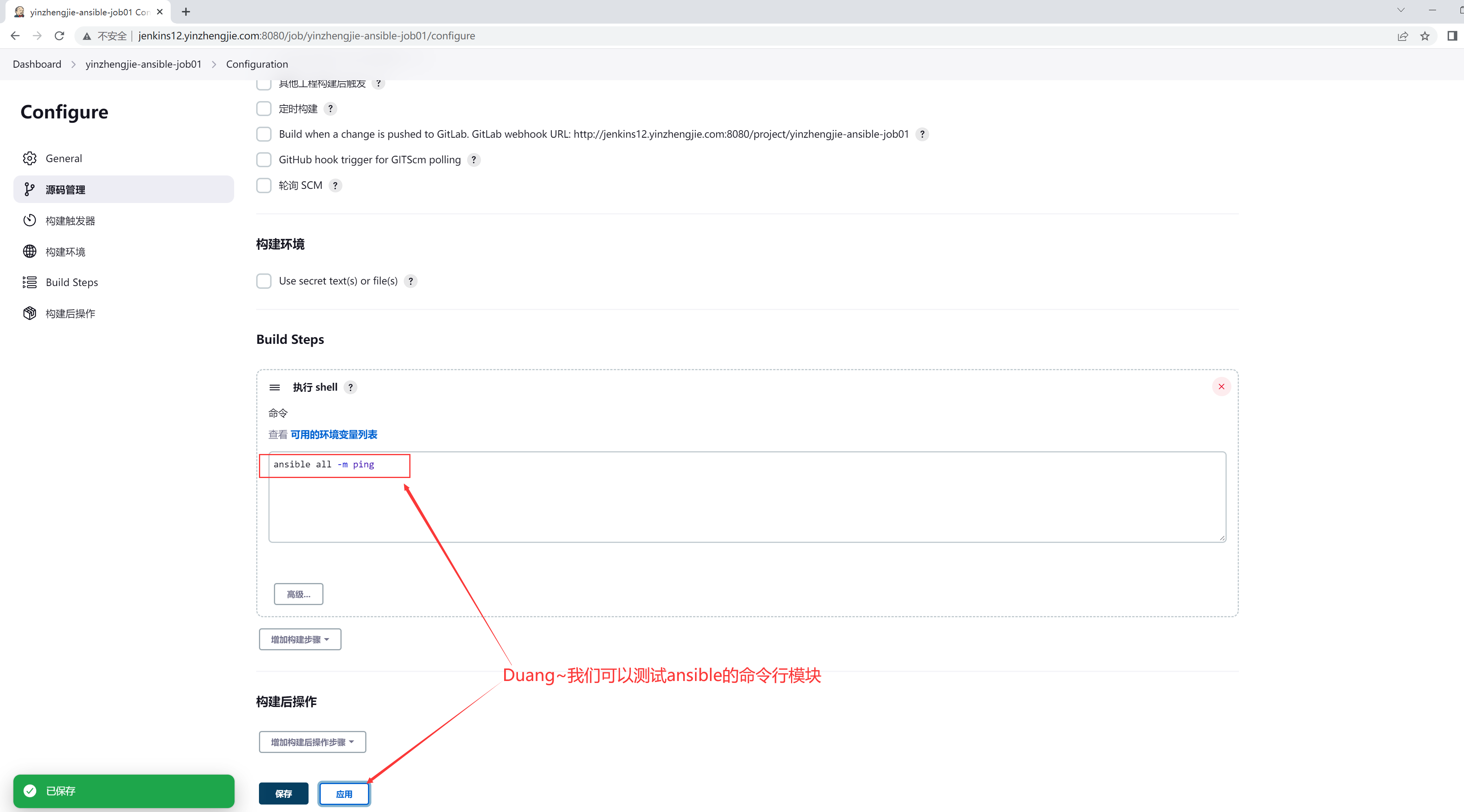 二.测试Jenkins能否调用ansible命令