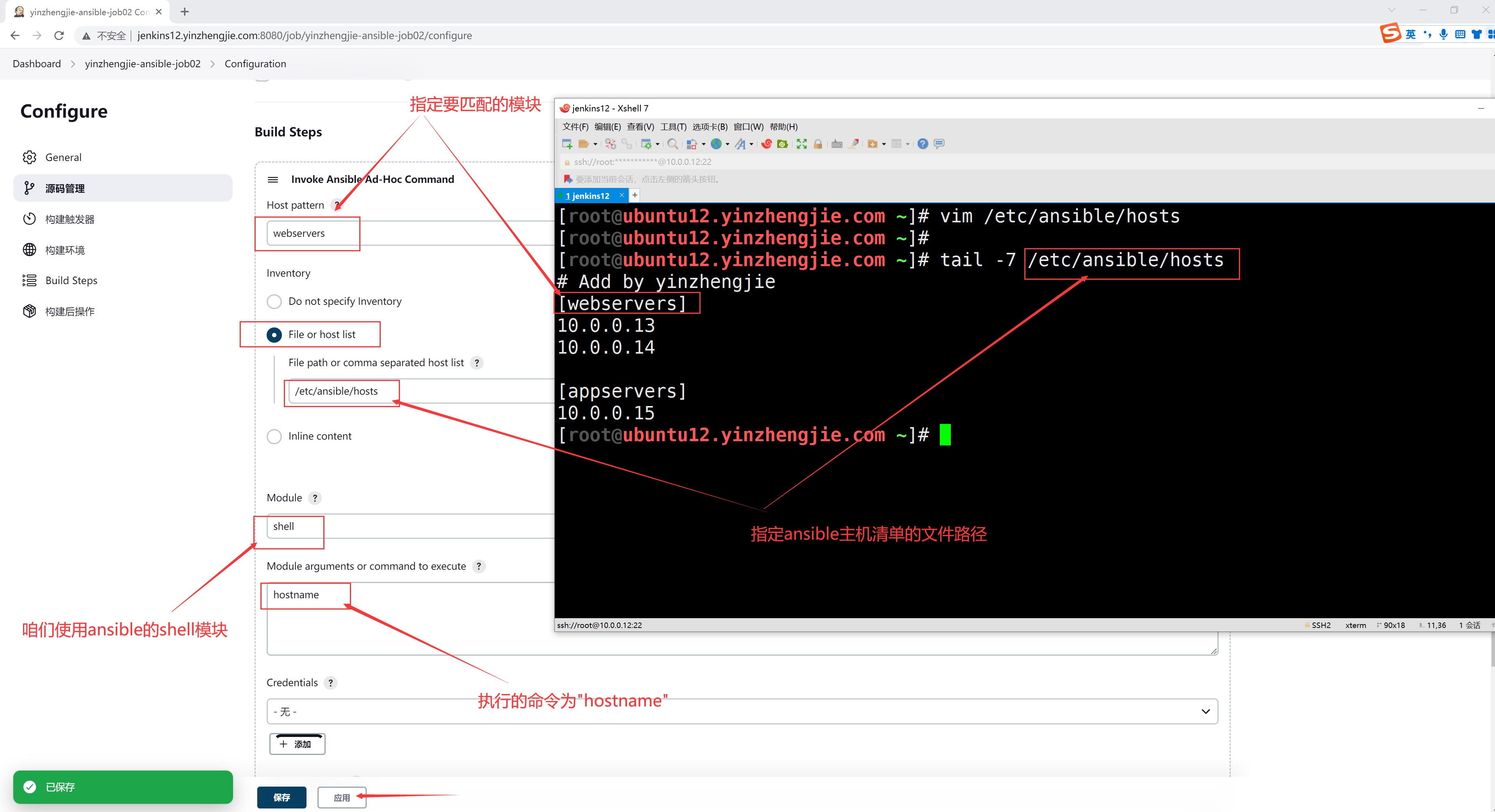如上图所示,成功添加"ansible all -m shell"。