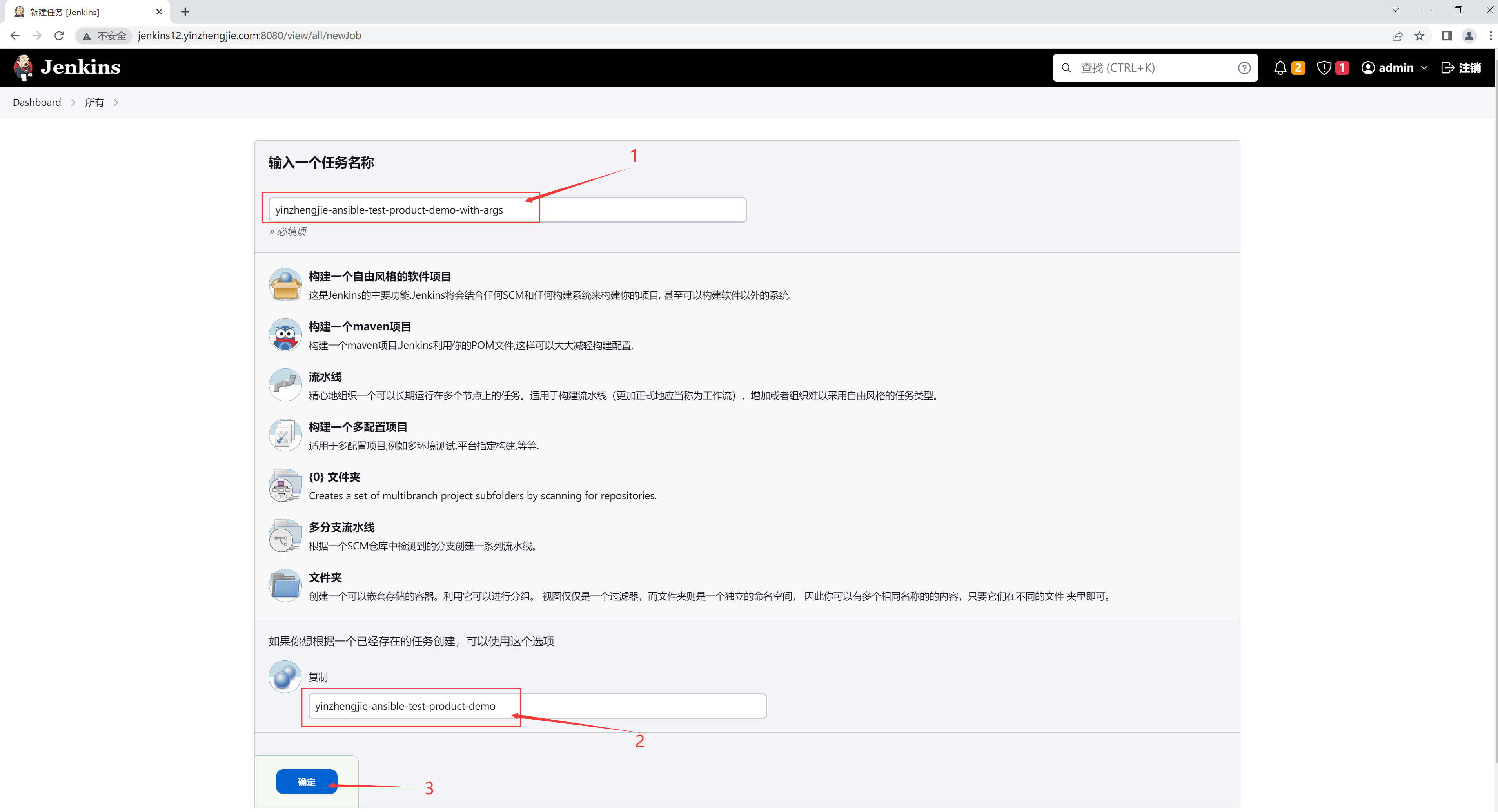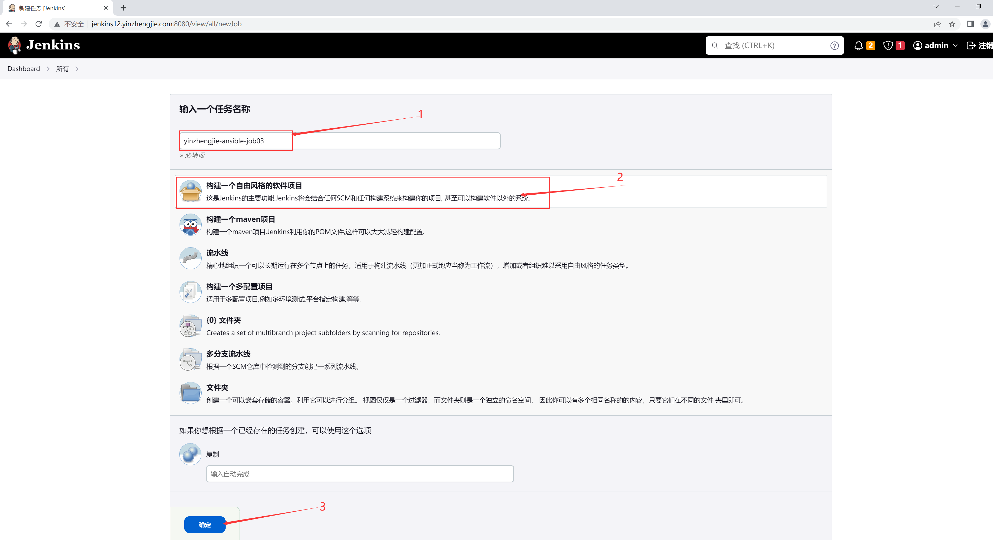 如上图所示,我们可以创建一个自由风格的"yinzhengjie-ansible-job02"项目