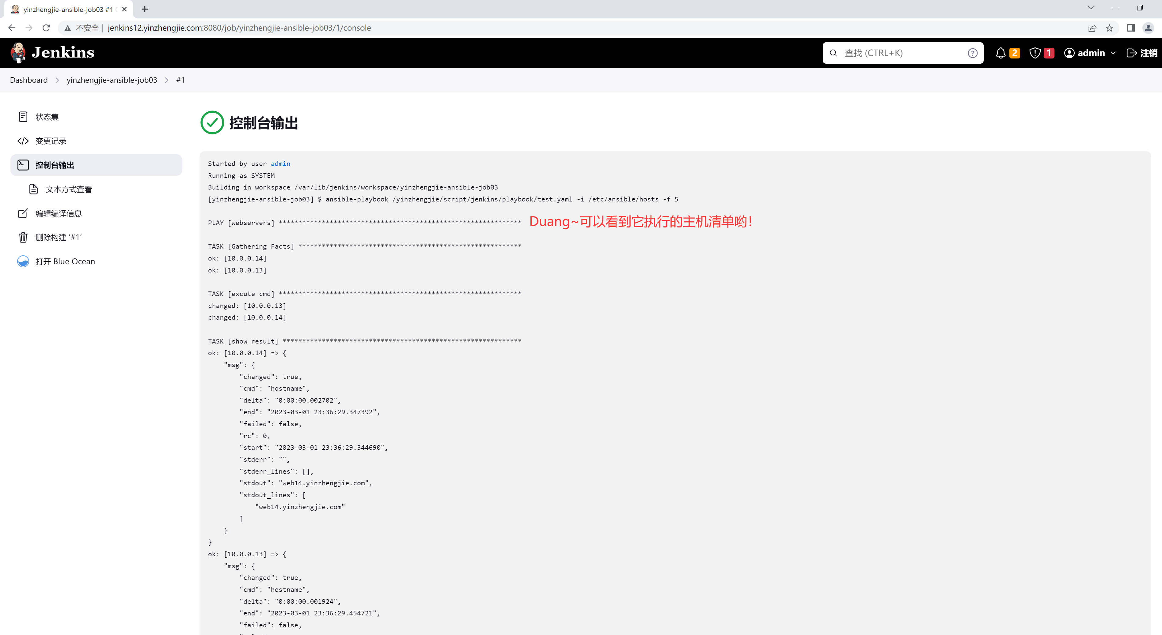 三.测试"Invoke Ansible Ad-Hoc Command"构建