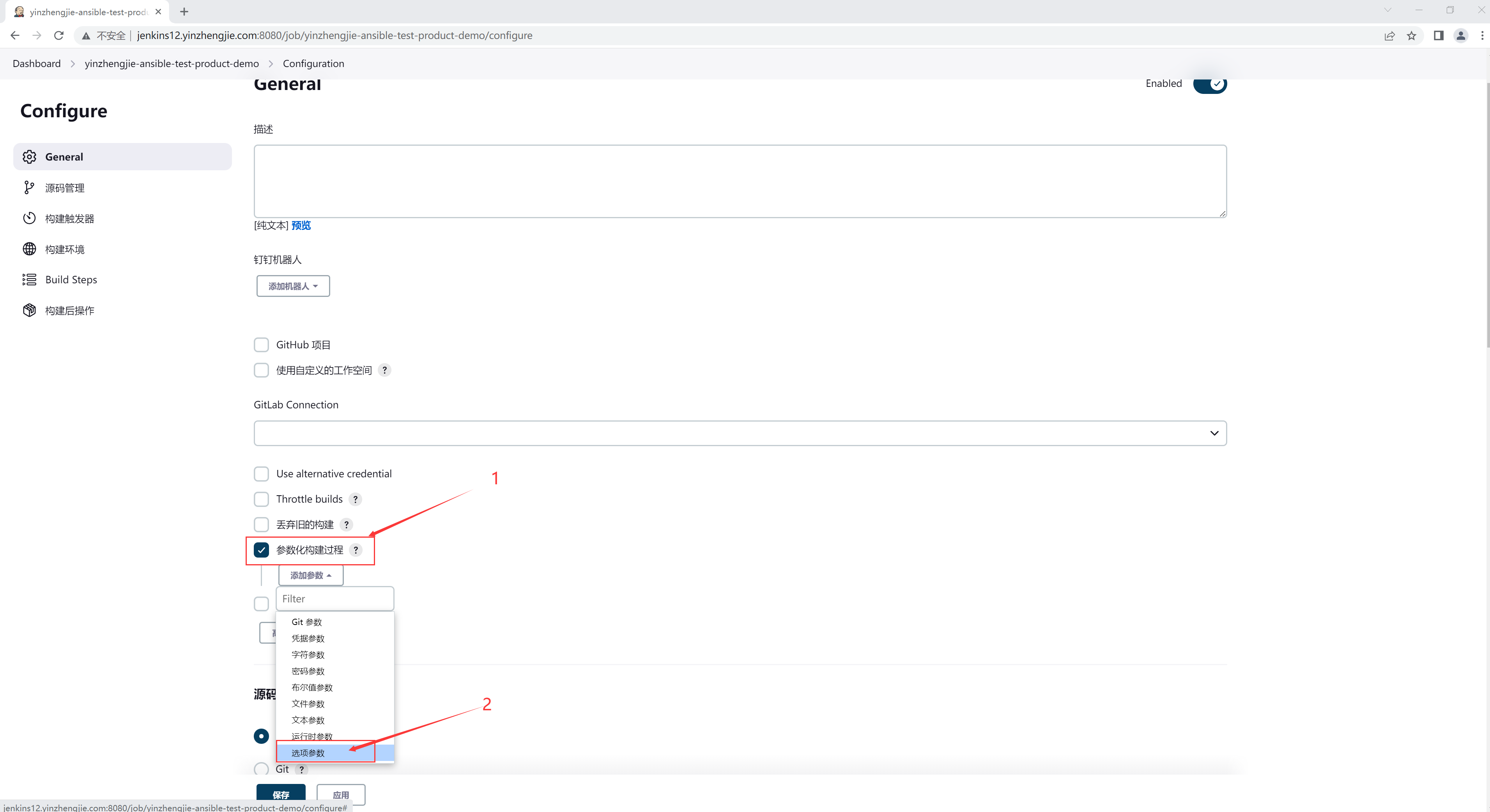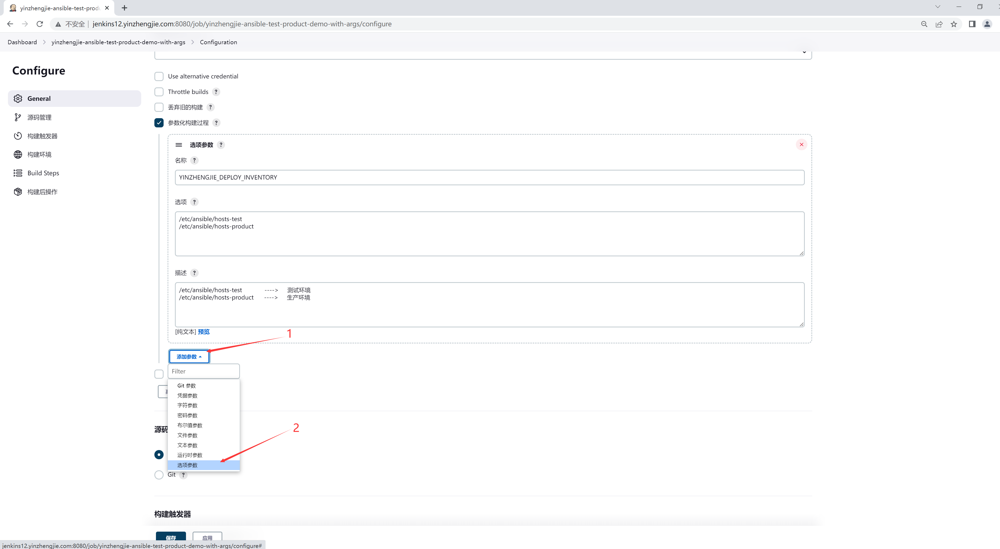 Jenkins变量,选择测试环境还是生产环境。