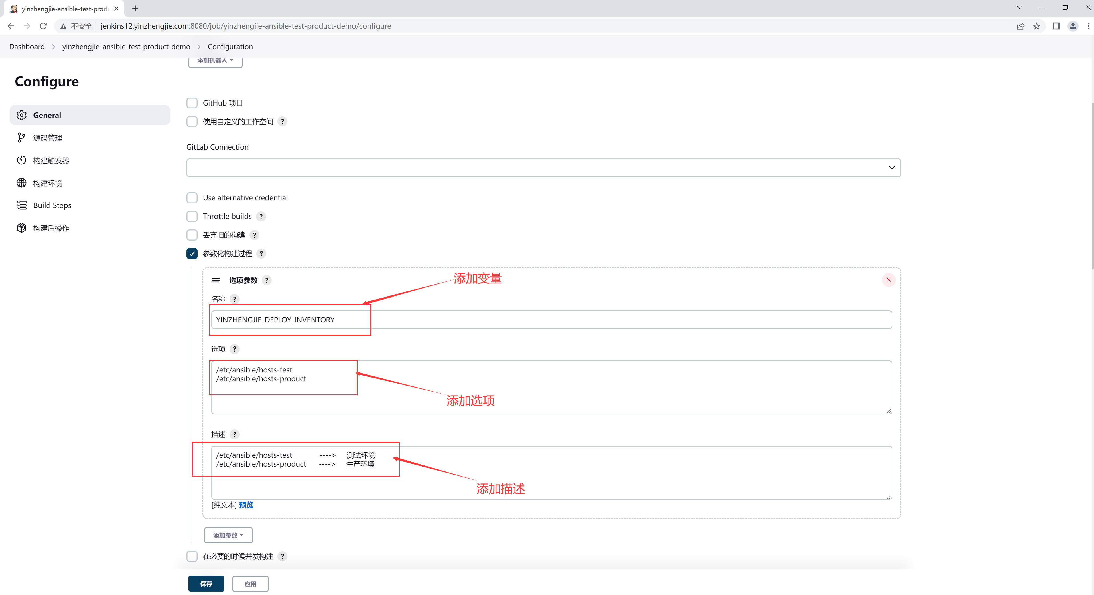 如下图所示,添加一个"YINZHENGJIE_DEPLOY_INVENTORY"的选项参数变量。