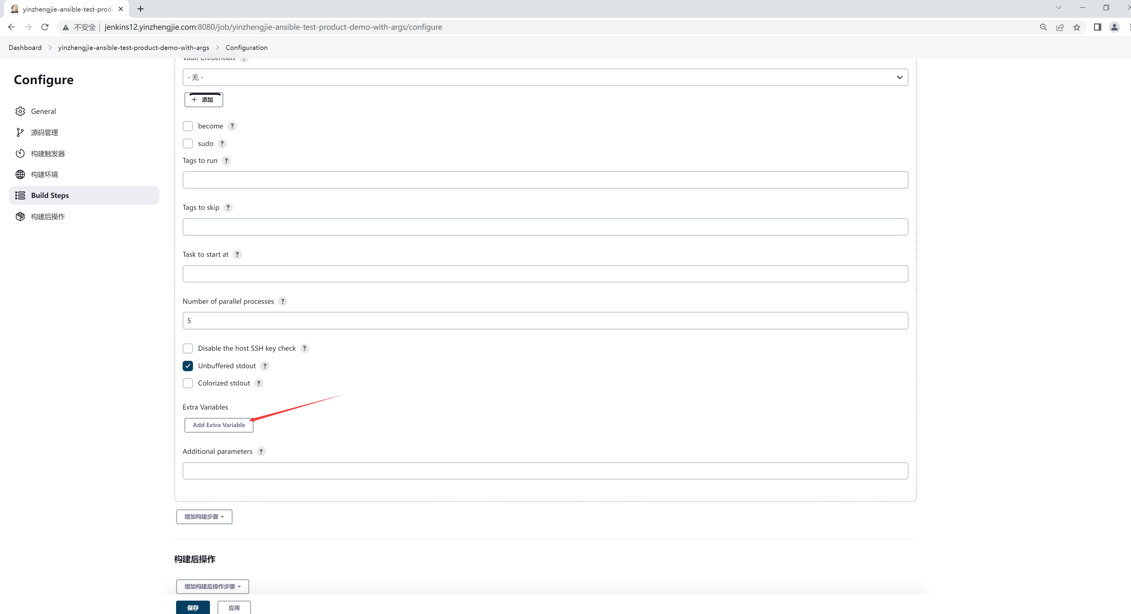 2.1 添加"Invoke Ansible Ad-Hoc Command"构建步骤