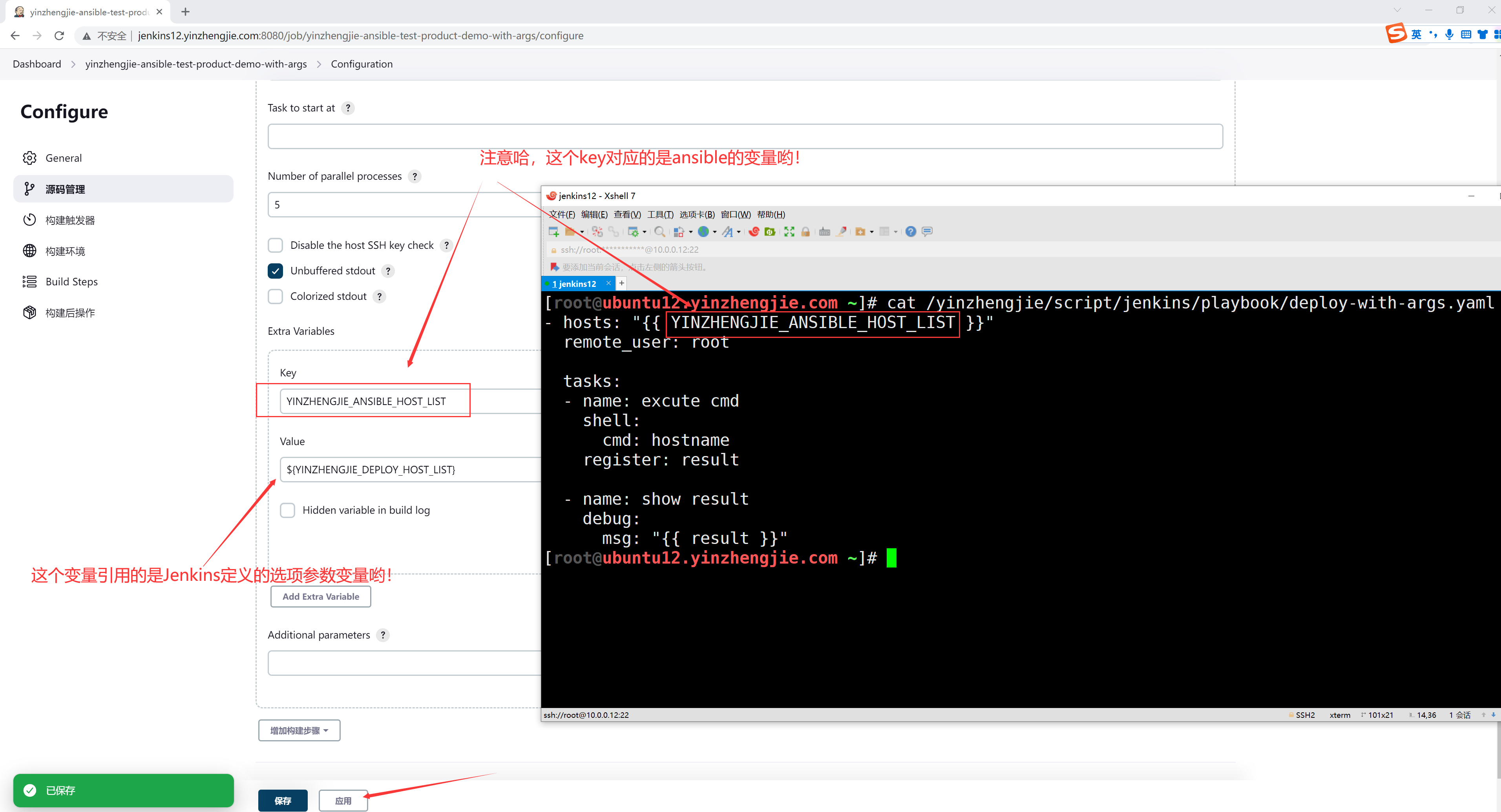 5 配置"Invoke Ansible Ad-Hoc Playbook"并调用自定义变量