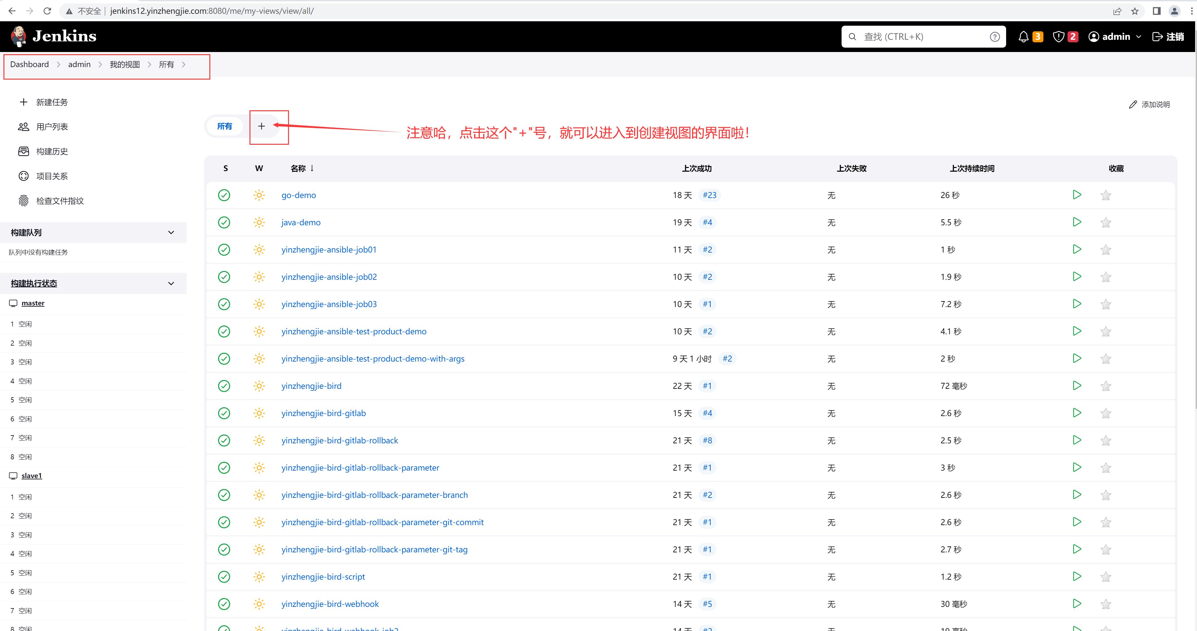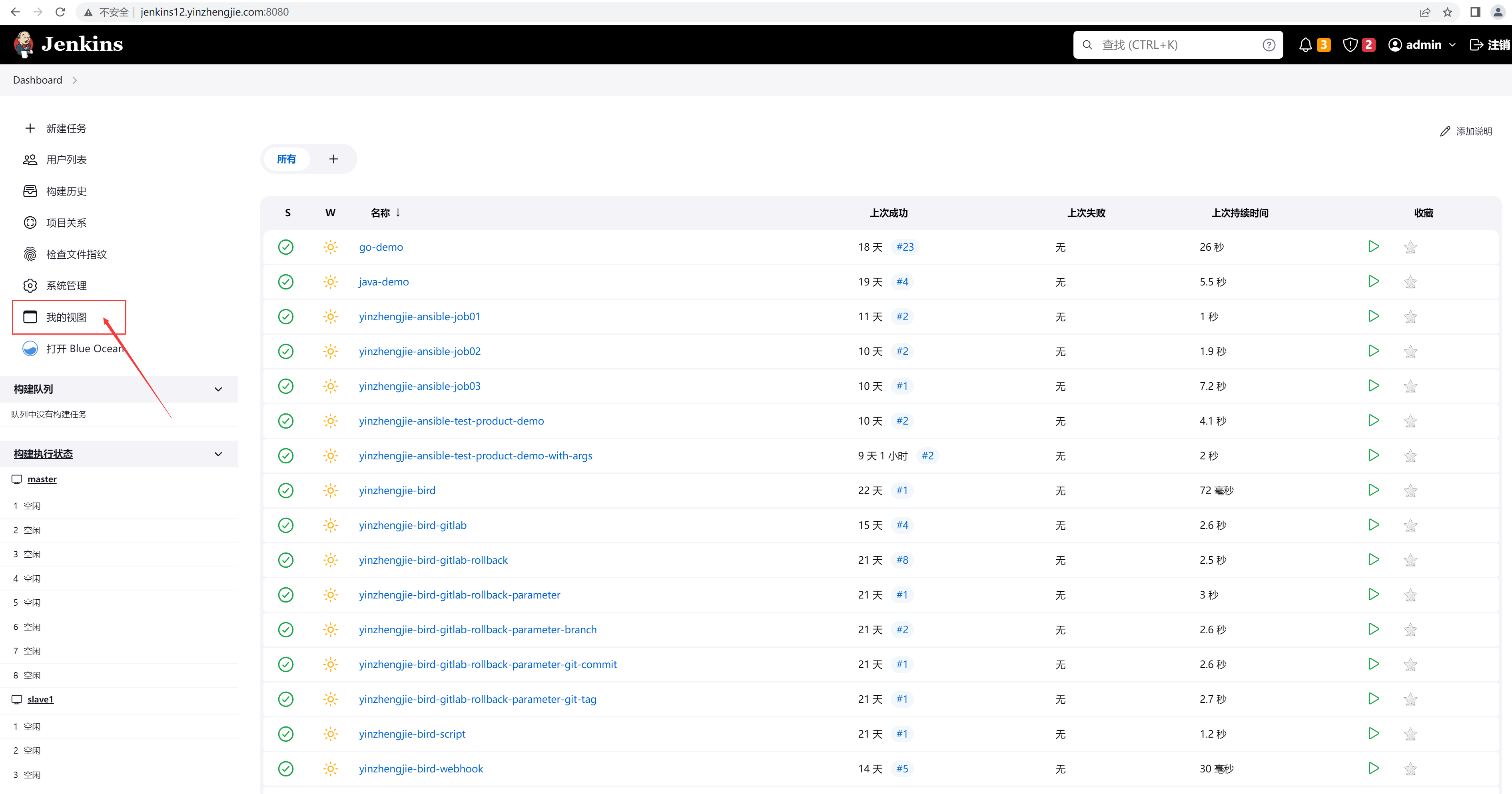 如上图所示,点击"我的视图",就可以看见当前账号(admin)的所有视图,如下图所示。