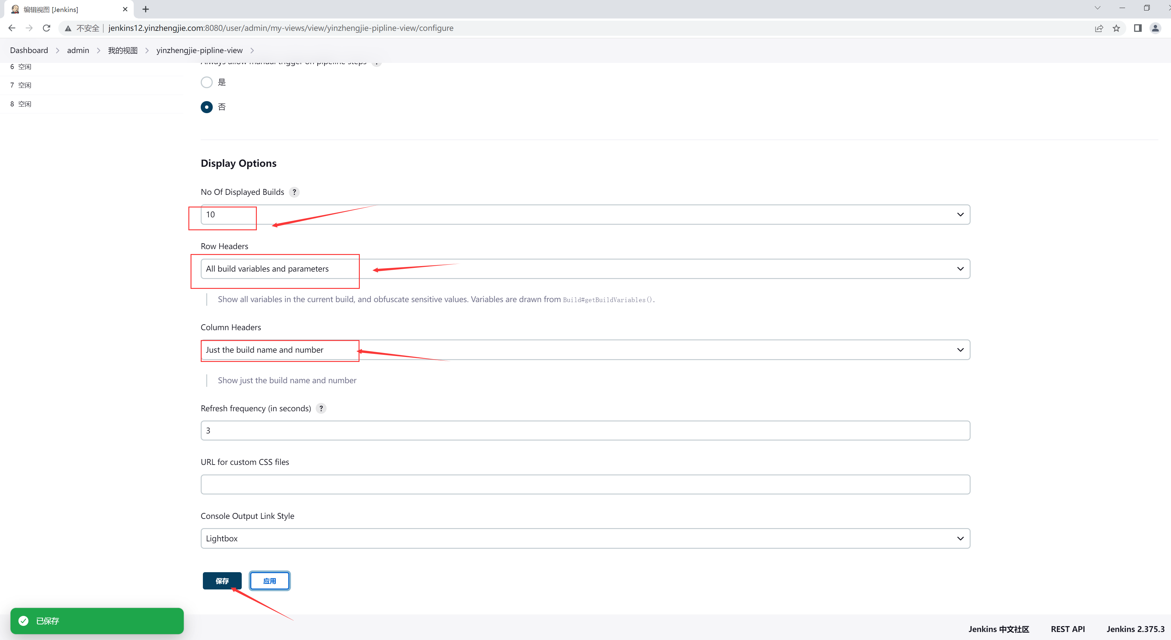 如上图所示,安装build pipeline插件,可以在原来"列表视图"和"我的视图"上增加"Build Pipeline View"。