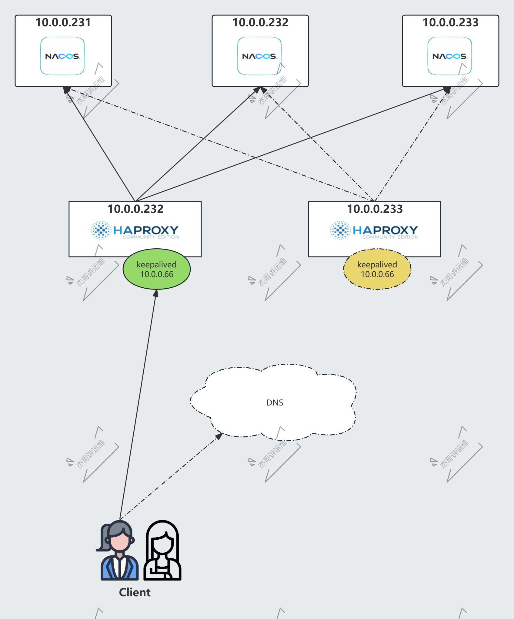 | worker232 | 10.0.0.232 | Nacos,haproxy,keepalived | VIP地址: 10.0.0.66 |