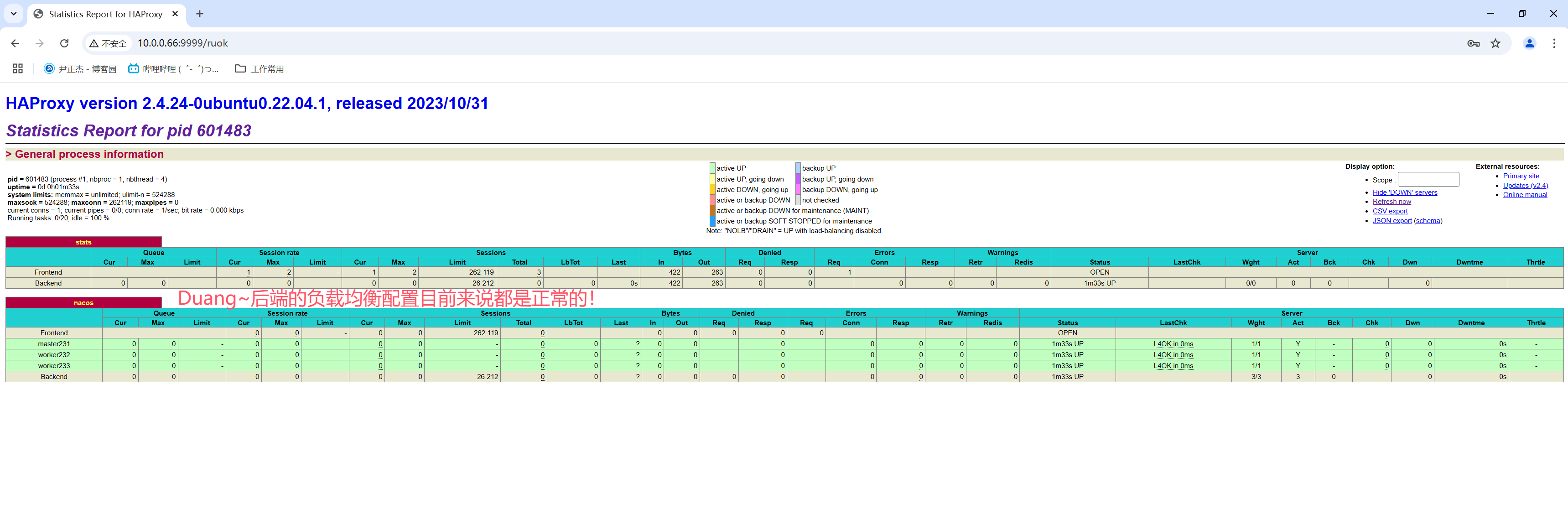 如上图所示,首次登录需要输入密码,登录成功后就可以看到如下图所示的haproxy的状态码信息啦~