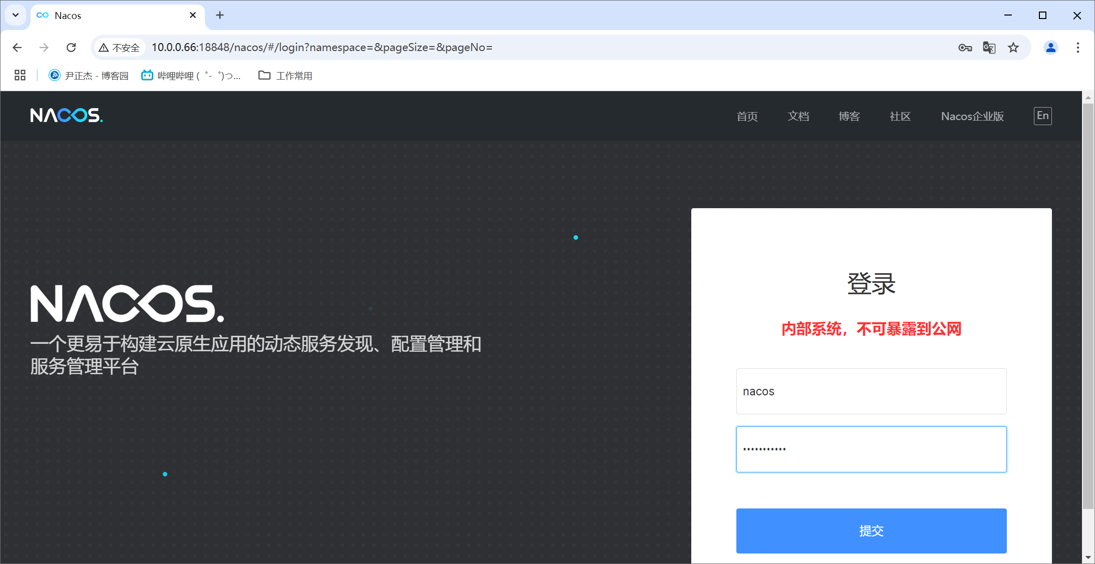 http://10.0.0.66:18848/nacos