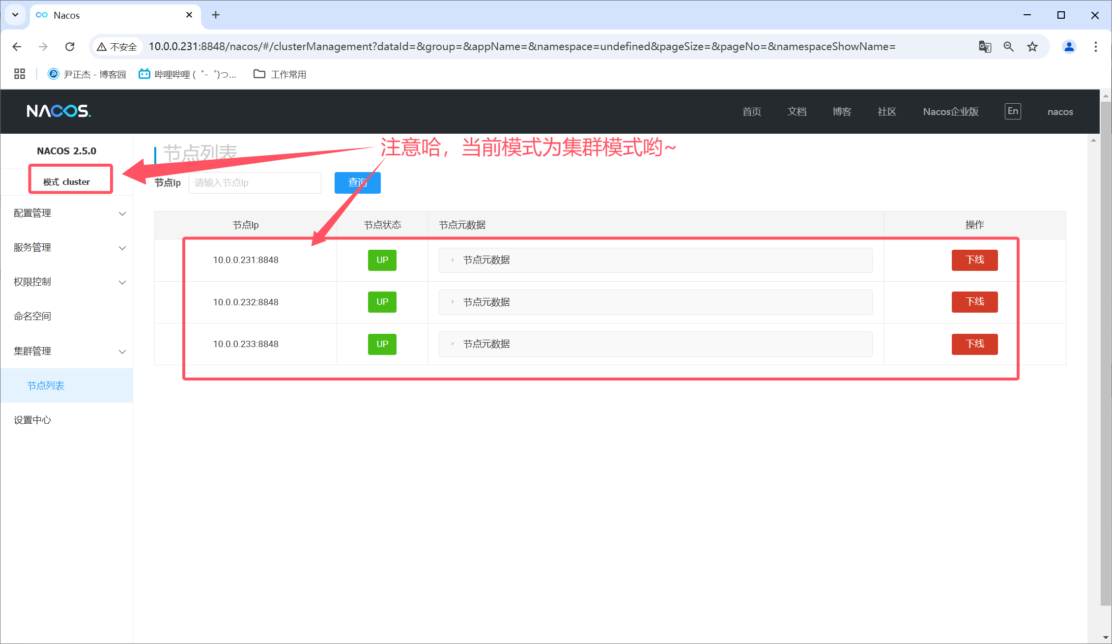 如下图所示,我们可以明显看到当前模式是集群模式哟~