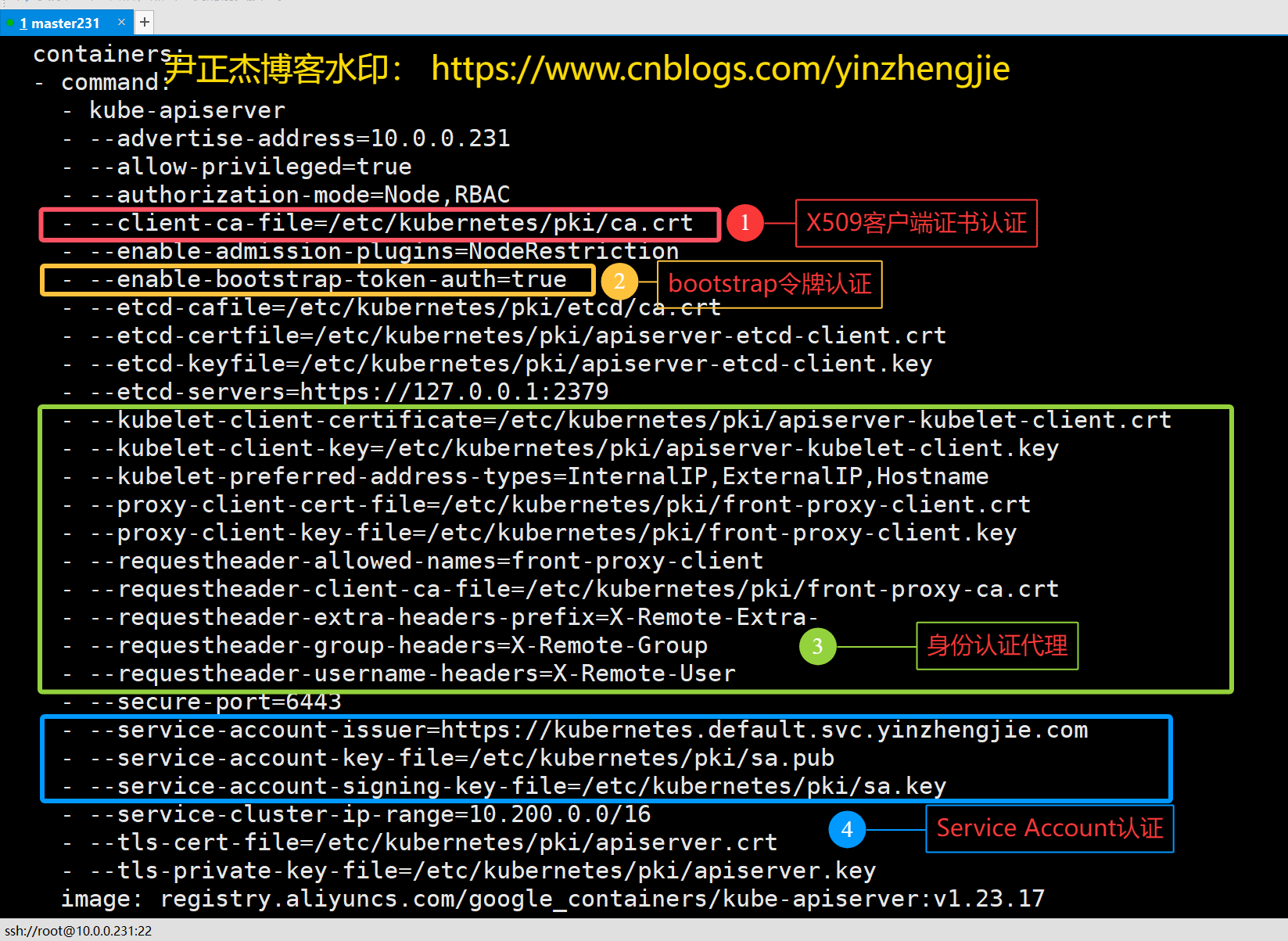 [root@master231 ~]# cat /etc/kubernetes/manifests/kube-apiserver.yaml
