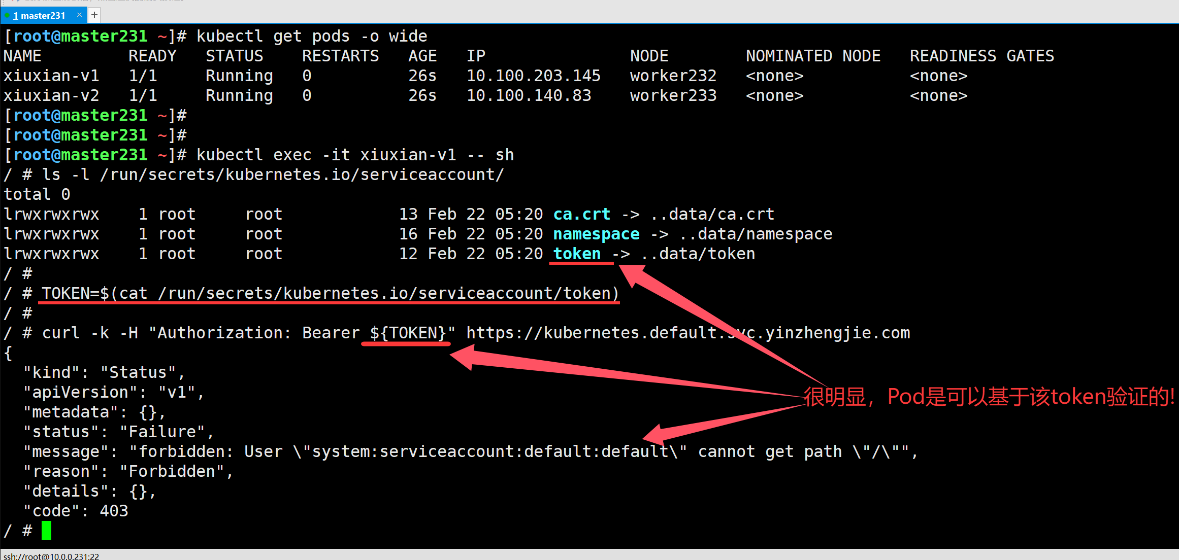 - 2.该Secret对象会自动附带认证到API Server用到的Token,也称为ServiceAccount Token