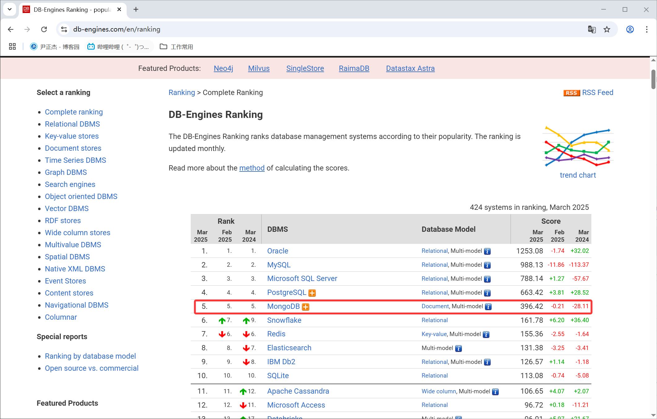 如上图所示,MongoDB在2025年的排名还是相当靠前的。MongoDB主要用途如下: