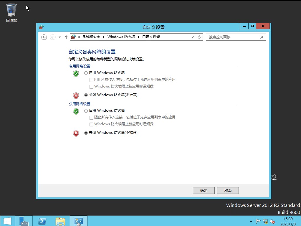1.首先创建俩个windows server2012版本的虚拟机,进行基础配置时,保证每个虚拟机处在同一lan网段