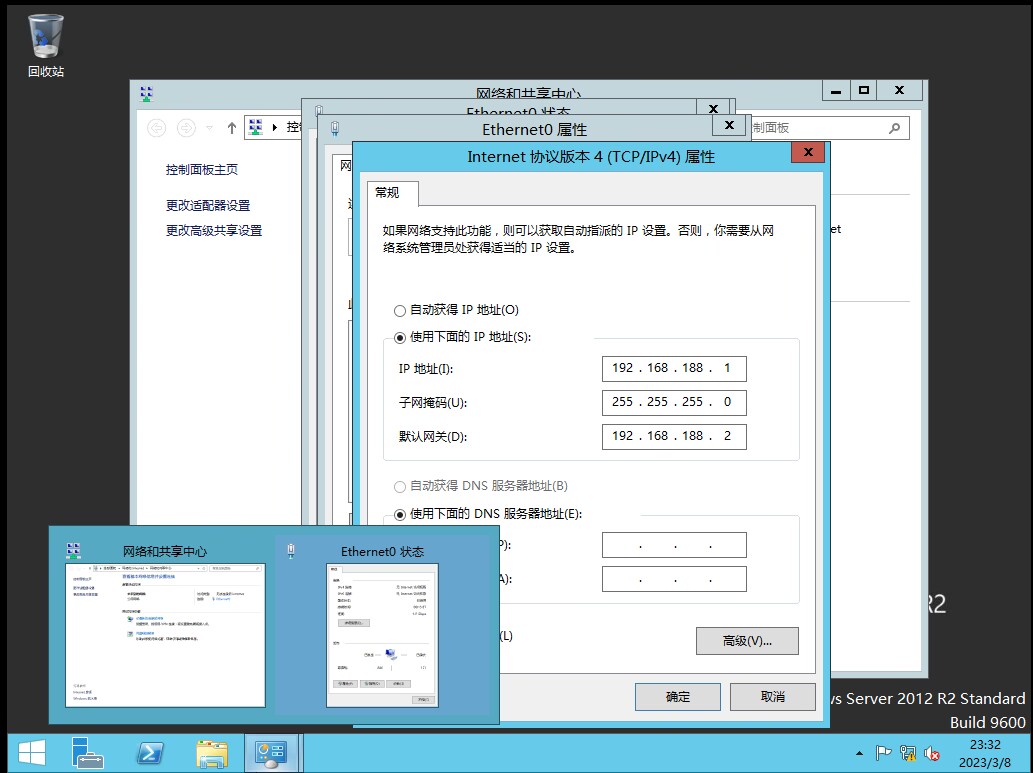 2.右击右下角的网络图标,点etherne-属性-IPv4-如图使用下面的IP地址,欧克,