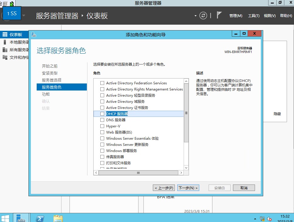 3.找到任务管理器,增加功能与角色,安装DHCP功能