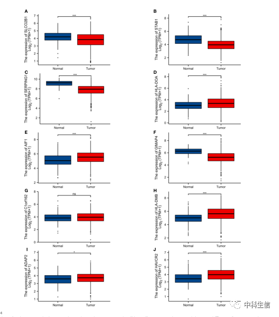 正常样品和肿瘤样品中各种基因的表达(图4)。