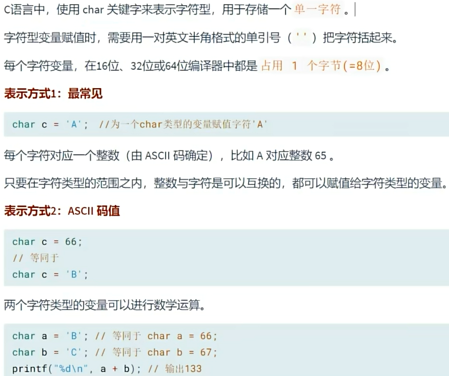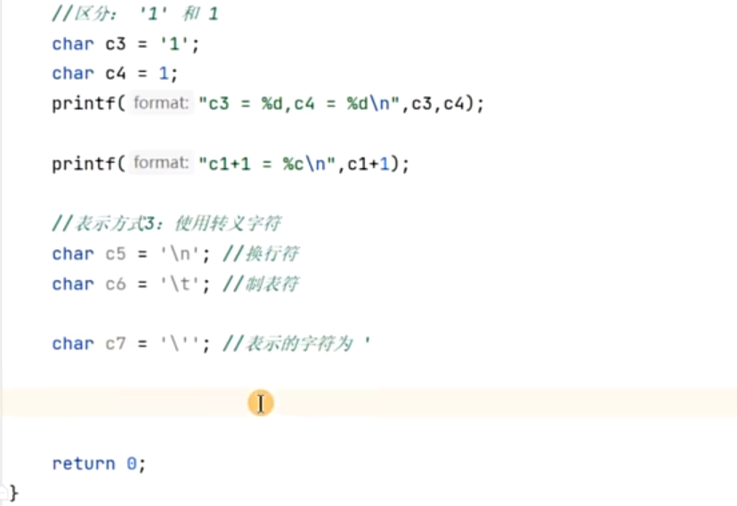 #include <stdio.h> #include <stdbool.h> // 使用宏定义 #define TRUE 1 #define BOOL int int main() { // 第1种处理方式 // c89中,如果想使用布尔类型的话,使用0表示false,使用1或非0表示true int handsome = 2; if (handsome) { printf("周日\n"); } // 第2种处理方式,使用宏定义 BOOL handsome1 = TRUE; if (handsome1) { printf("okk\n"); } // 第3种处理方式 // c99中,标准添加了类型_Bool,表示布尔值,即逻辑值true和false _Bool isBeauty = 1; if (isBeauty) { printf("美女\n"); } // 第4种处理方式 // c99还提供了一个头文件stdbool.h,文件中定义了'bool'代表'_Bool' bool isFlag = true; if (isFlag) { printf("olll\n"); } return 0; }