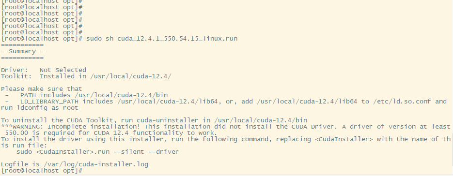 sudo sh cuda_12.4.1_550.54.15_linux.run