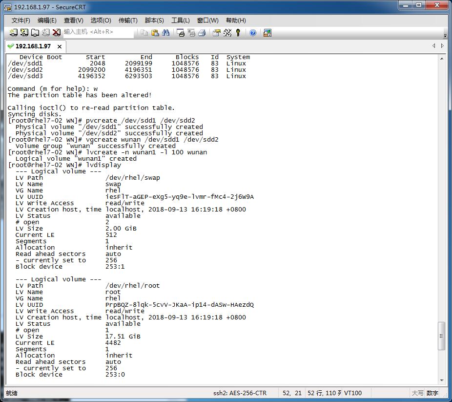 --vgcreate wunan /dev/sdd1 /dev/sdd2