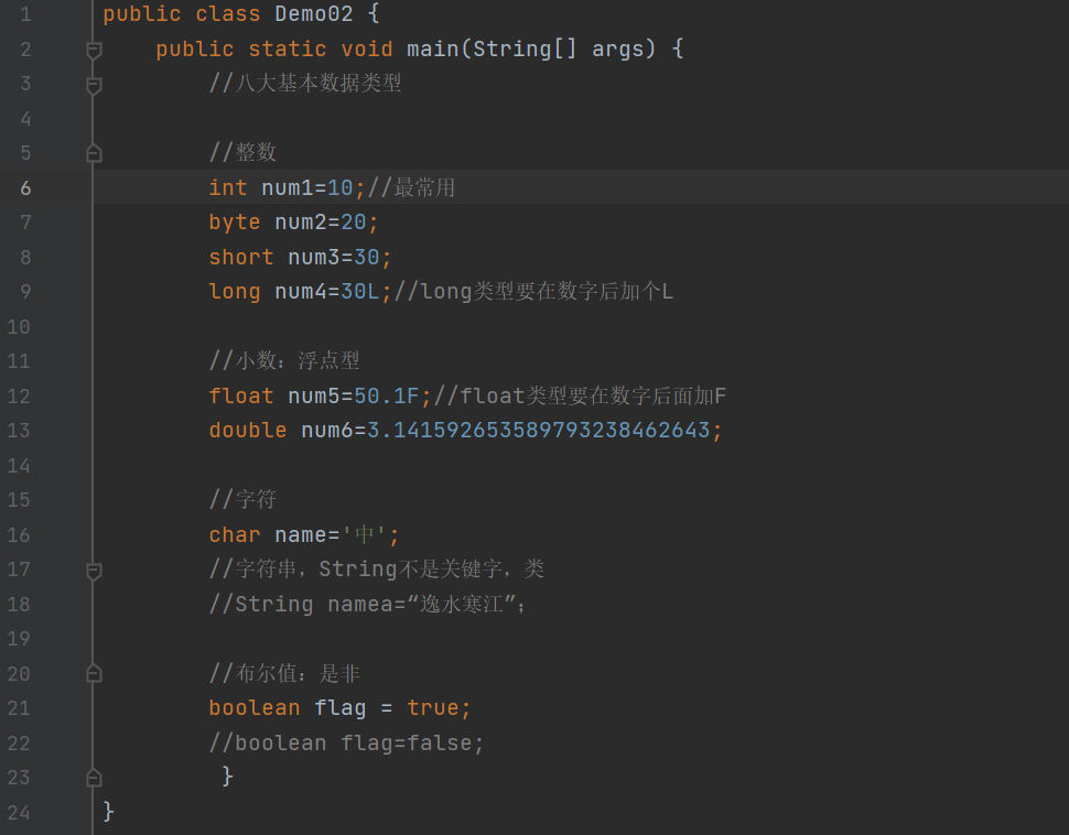整数类型(byte占1个字节范围,short占2个字节范围,int占4个字节范围,long占8个字节范围,)