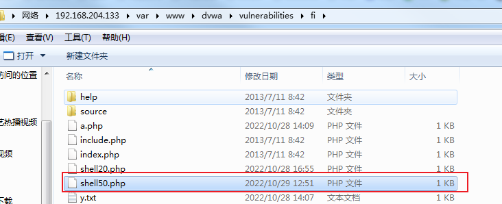 然后用菜刀连接http://192.168.204.133/dvwa/vulnerabilities/fi/shell20.php 密码是木马里的yangge