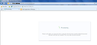 5. Click "OK" and now click the "My Content" link from your "My Site" site. You can see the "Processing" screen which means that your steps are correct.