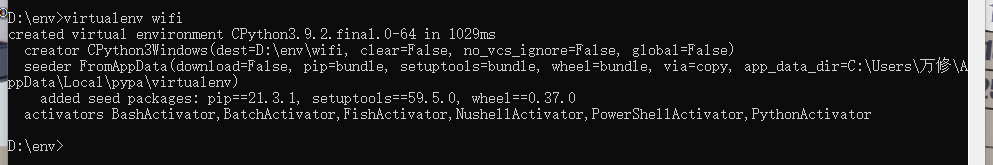 进入目录后再使用命令virtualenv 包名进行创建