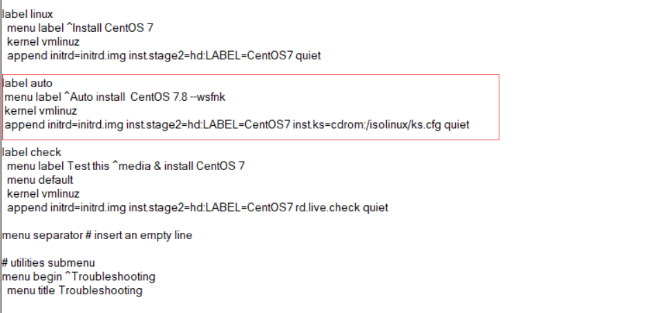 cp /root/anaconda-ks.cfg /ISO/isolinux/ks.cfg