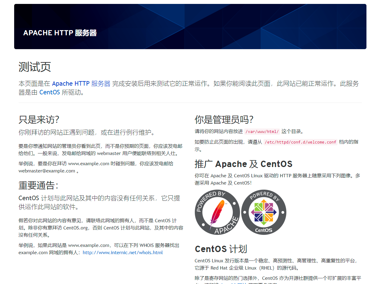 - Apache(httpd) 默认版本 : 2.4.37;