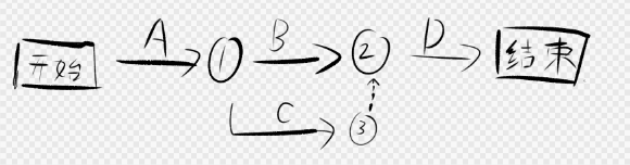大概是在A-BC-D的情况下,因为一条线只能对应一个活动,且两个编号之间只能连一条实线,所以就一个直接用实线,另一个用实线接虚箭线辅助作图。