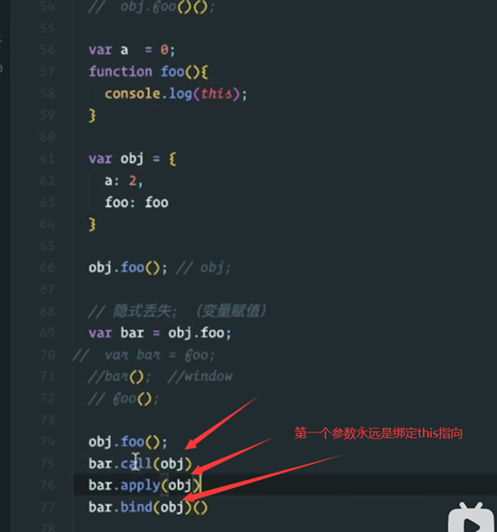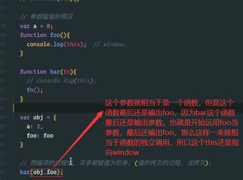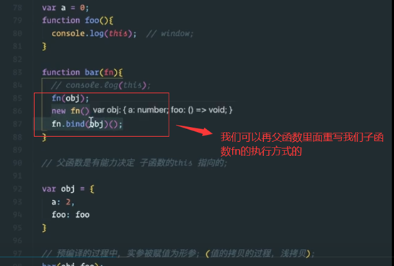 父函数是有能力决定子函数的this指向的。就比如现在这里面的bar函数是父函数,而fn函数是子函数。
