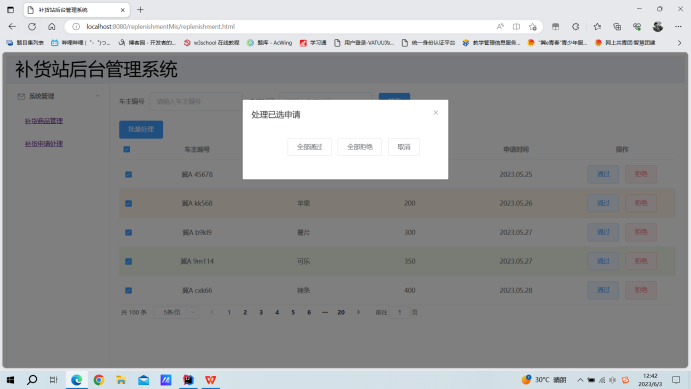 接下来是补货申请管理,可以根据车主编号和申请时间进行补货申请信息的检索